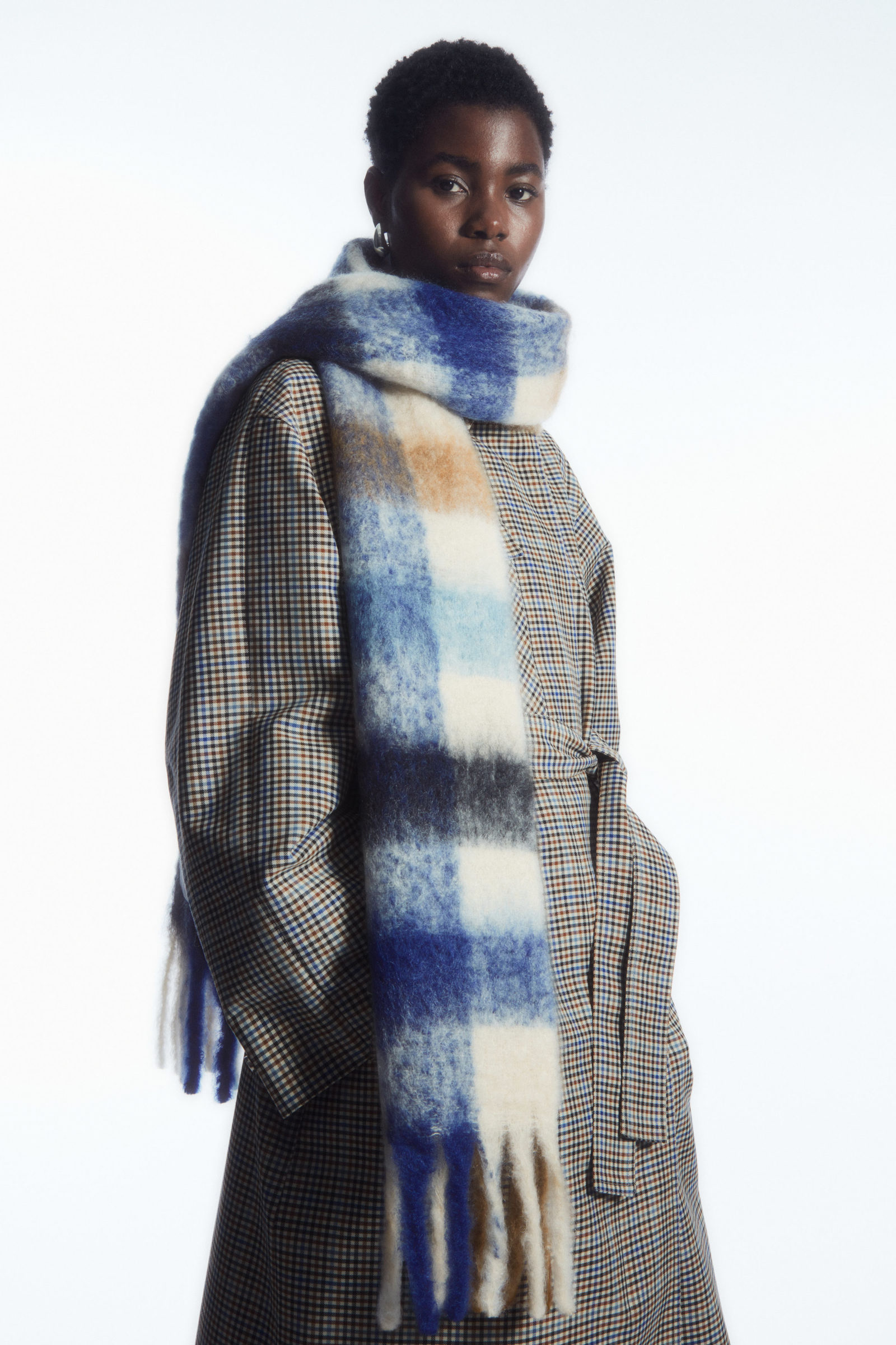 코스 오버사이즈 모헤어 블렌드 머플러(블루/브라운/체크)