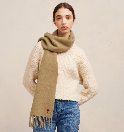 하트 모양의 귀여운 로고가 포인트인 아미 목도리입니다. (아미 홈페이지)