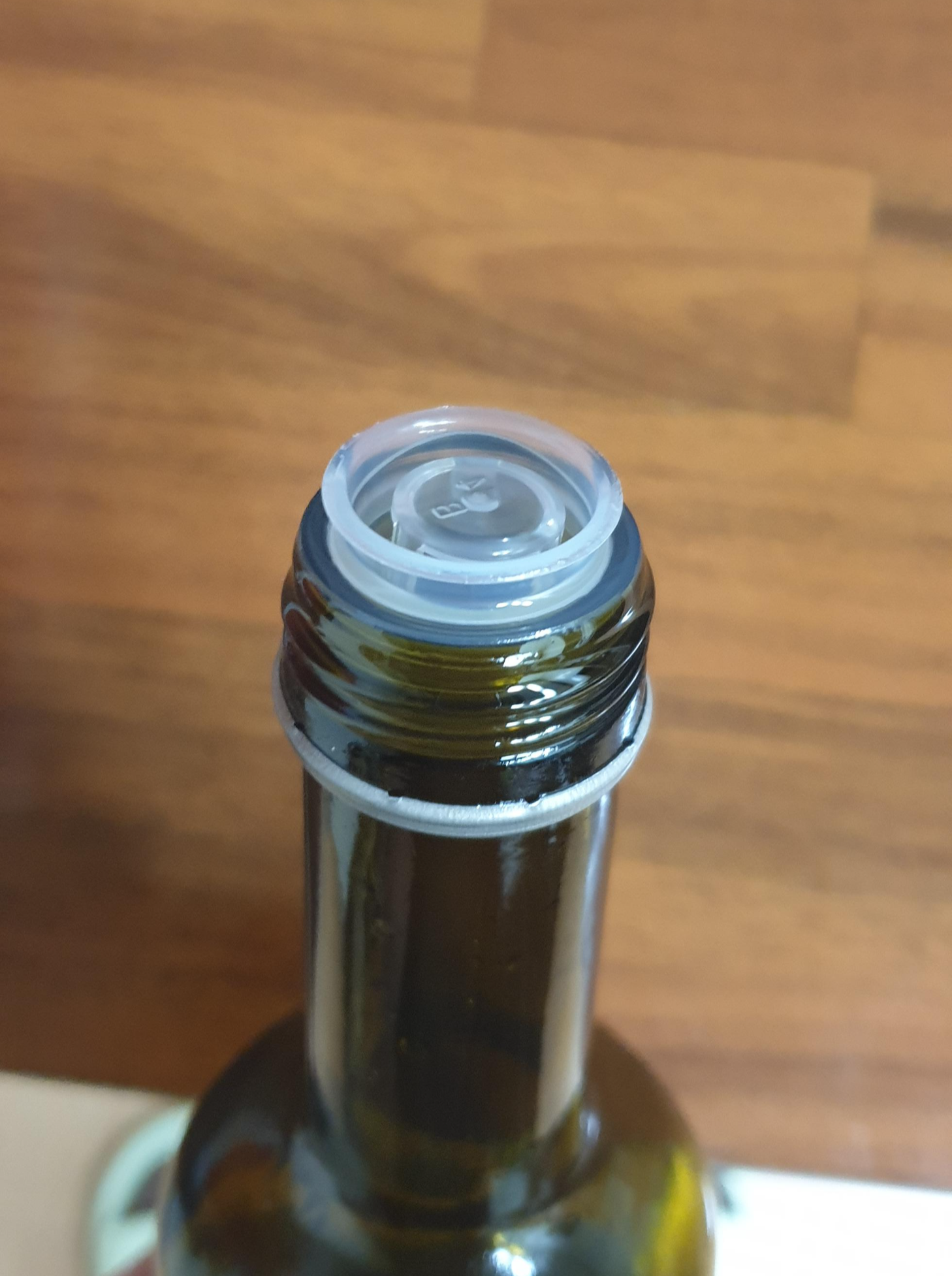 병에 오일을 리필하려면 입구에 있는 안뚜껑을 열어야 합니다. 키친타월로 잡고 포크 등으로 틈을 벌리면 열 수 있습니다.