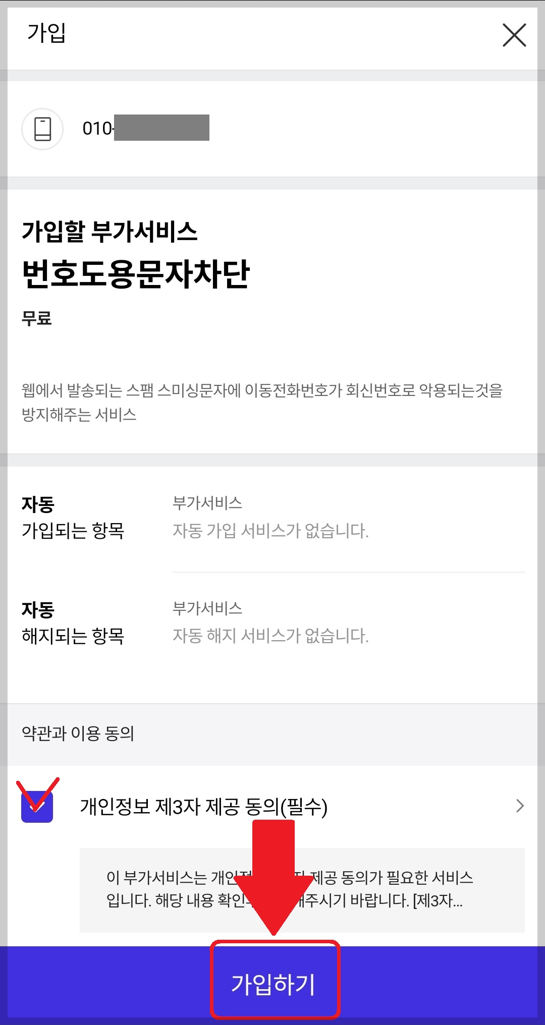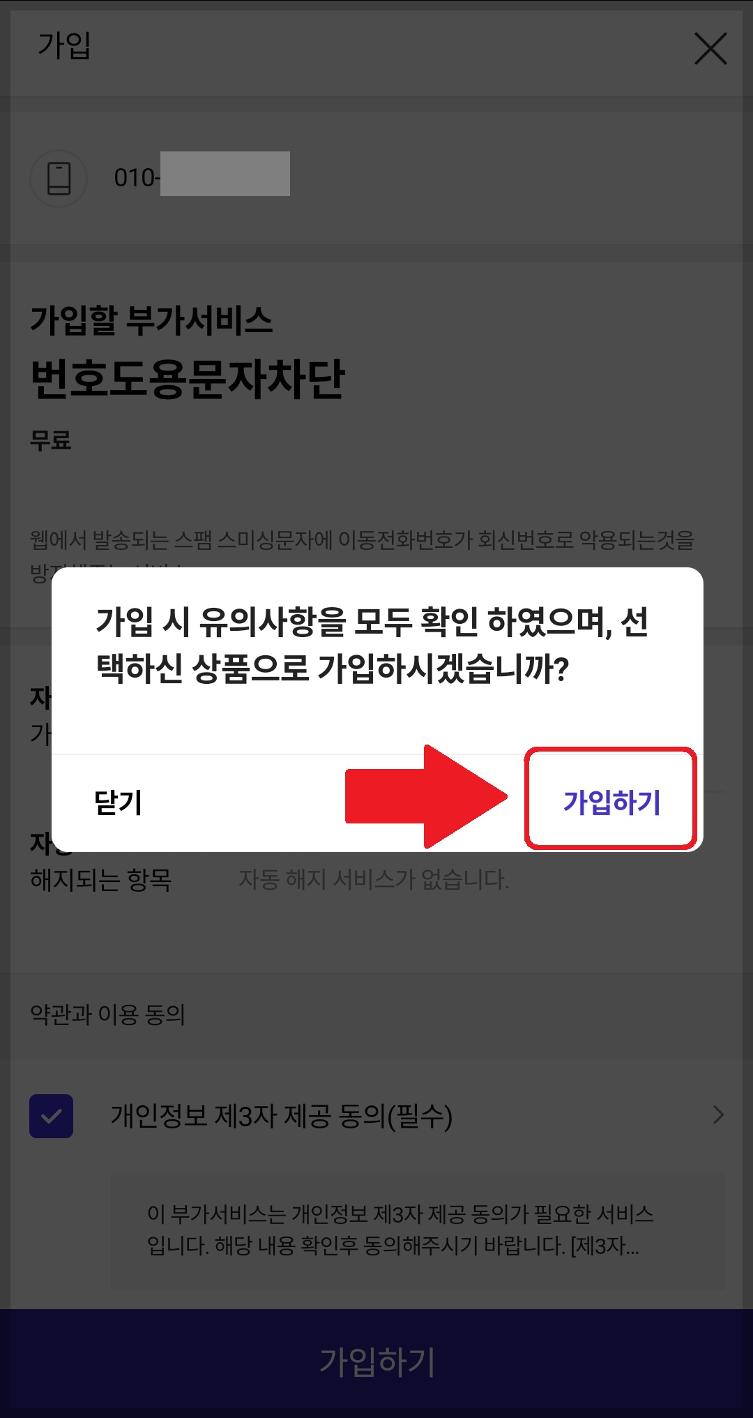 이렇게 통신사 앱을 통해서 간편하게 번호도용을 방지할 수 있습니다. 내 번호로 스팸번호가 발송되는 것을 방지하기 위해 지금 바로 서비스를 신청하시기 바랍니다.