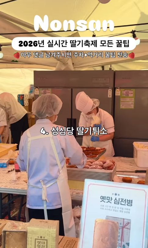 먹거리 부스도 빼놓을 수 없는데, 특히 논산 딸기로 만든 딸기통주스나 다양한 딸기 디저트들은 줄을 서서라도 먹을 만했어요. 성심당 부스는 사람이 너무 많아서 포기하는 분들도 많았다고 하더라고요.