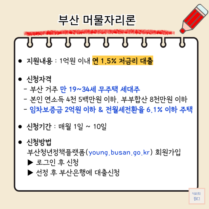 이번 포스팅에서는 부산 머물자리론의 신청방법과 혜택에 대해 자세히 알아보겠습니다.