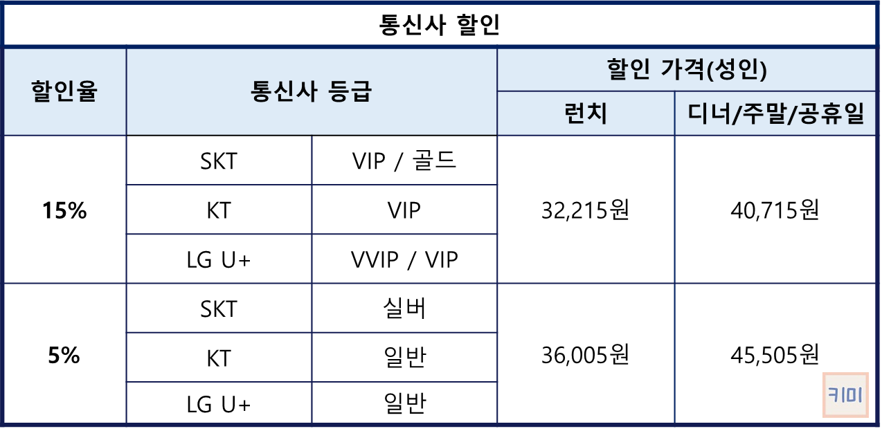제휴카드 할인 시 아래와 같은 가격으로 VIPS를 이용할 수 있습니다.