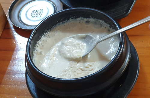 기본 콩비지는 뽀얗고 고운 콩비지에 간 돼지고기가 들어 있었습니다. 제가 먹어 본 콩비지 중에서 가장 부드럽고 고소했습니다.