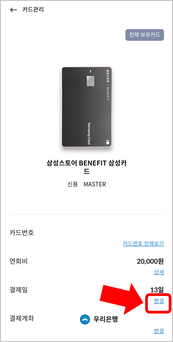 삼성카드 결제일 변경 방법