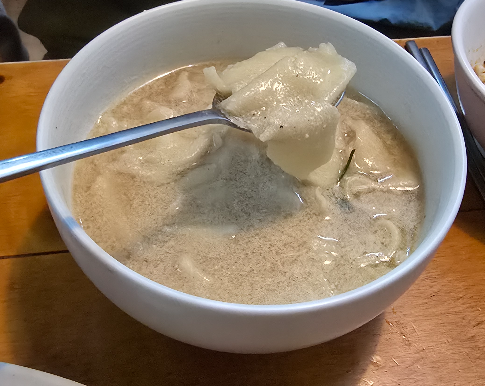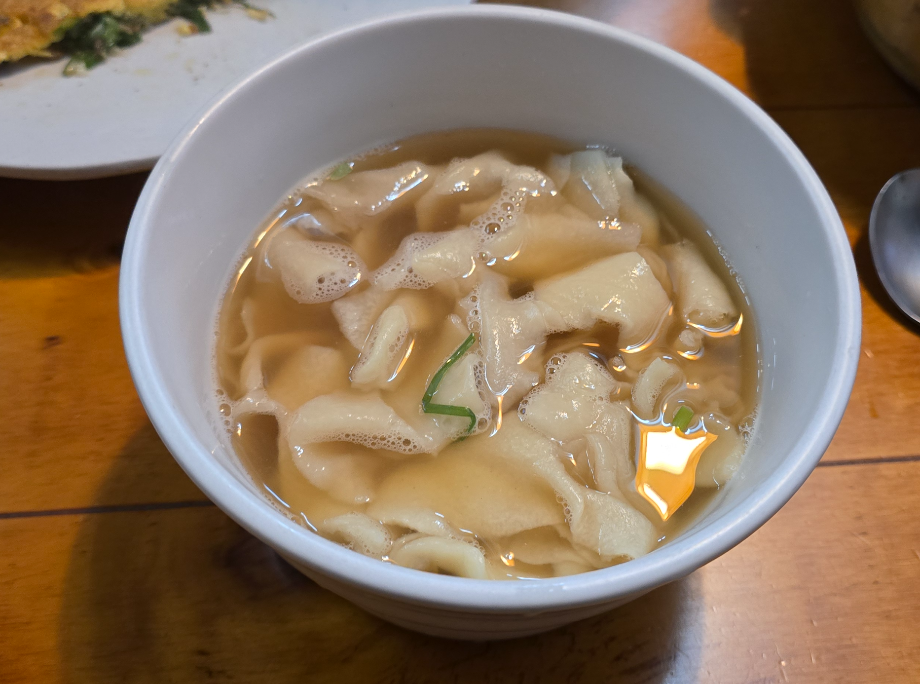 수제비가 부드러우면서도 쫄깃한 식감이 함께 있어서 씹는 재미가 있고, 육수가 아주 진하면서도 깔끔해서 좋았습니다.