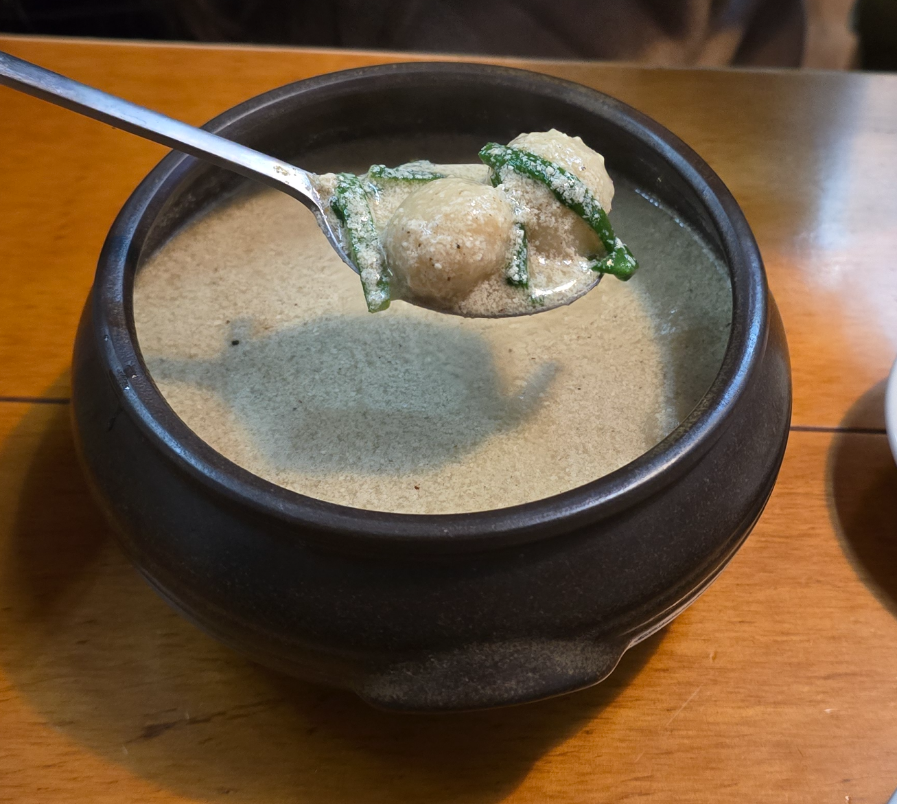 보통 들깨 국물은 들깨가루가 입에 걸리는데, 들깨를 곱게 갈아 국물을 내신 건지 전혀 걸리는 것 없이 아주 부드러웠습니다.