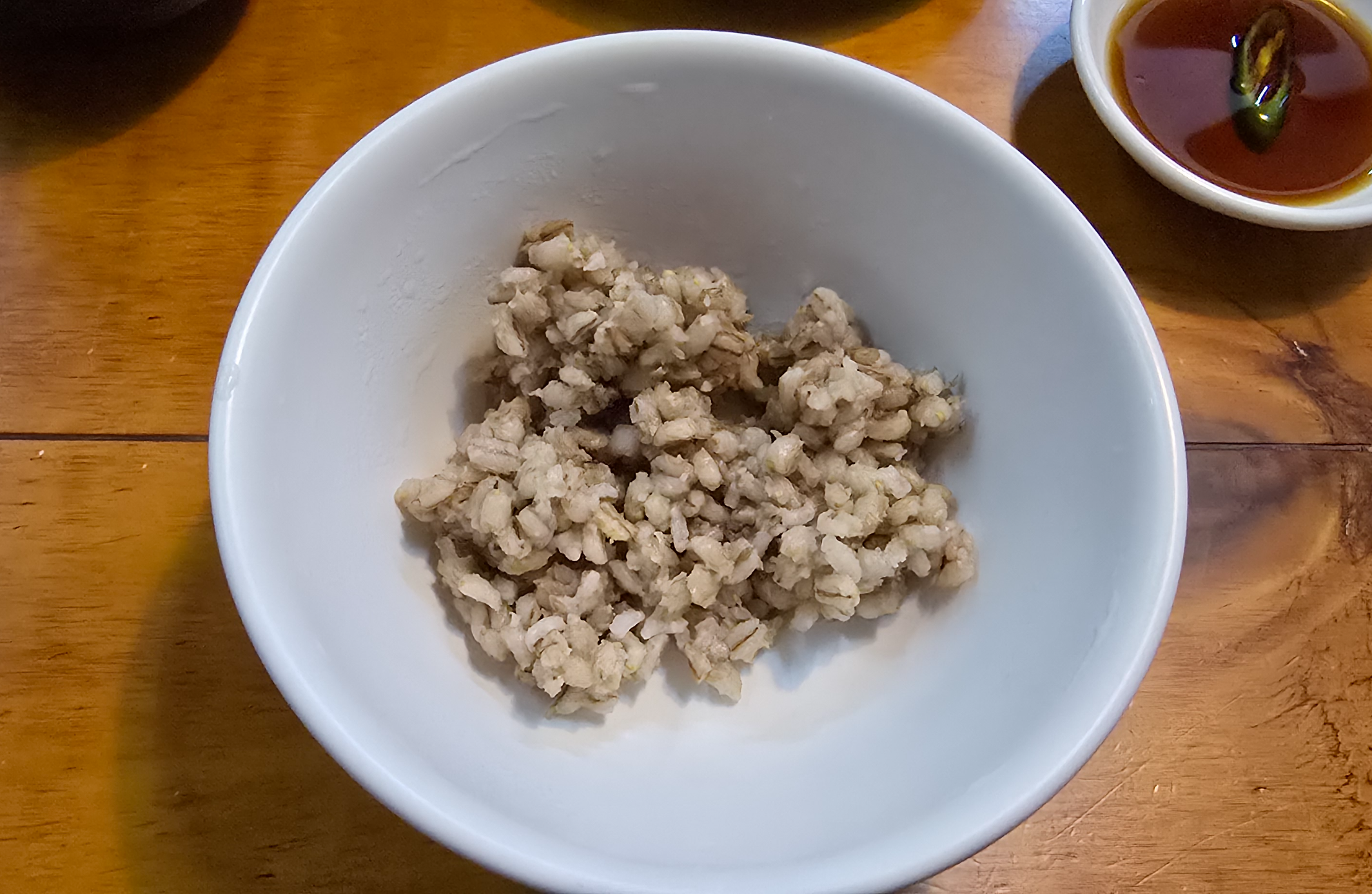 식사를 주문하면 입맛을 돋울 수 있도록 보리밥을 조금 내어 주십니다. 참기름을 뿌린 보리밥에 고추장과 열무김치를 넣고 비벼 먹으면 딱 입맛을 돋구어 아주 좋았습니다.