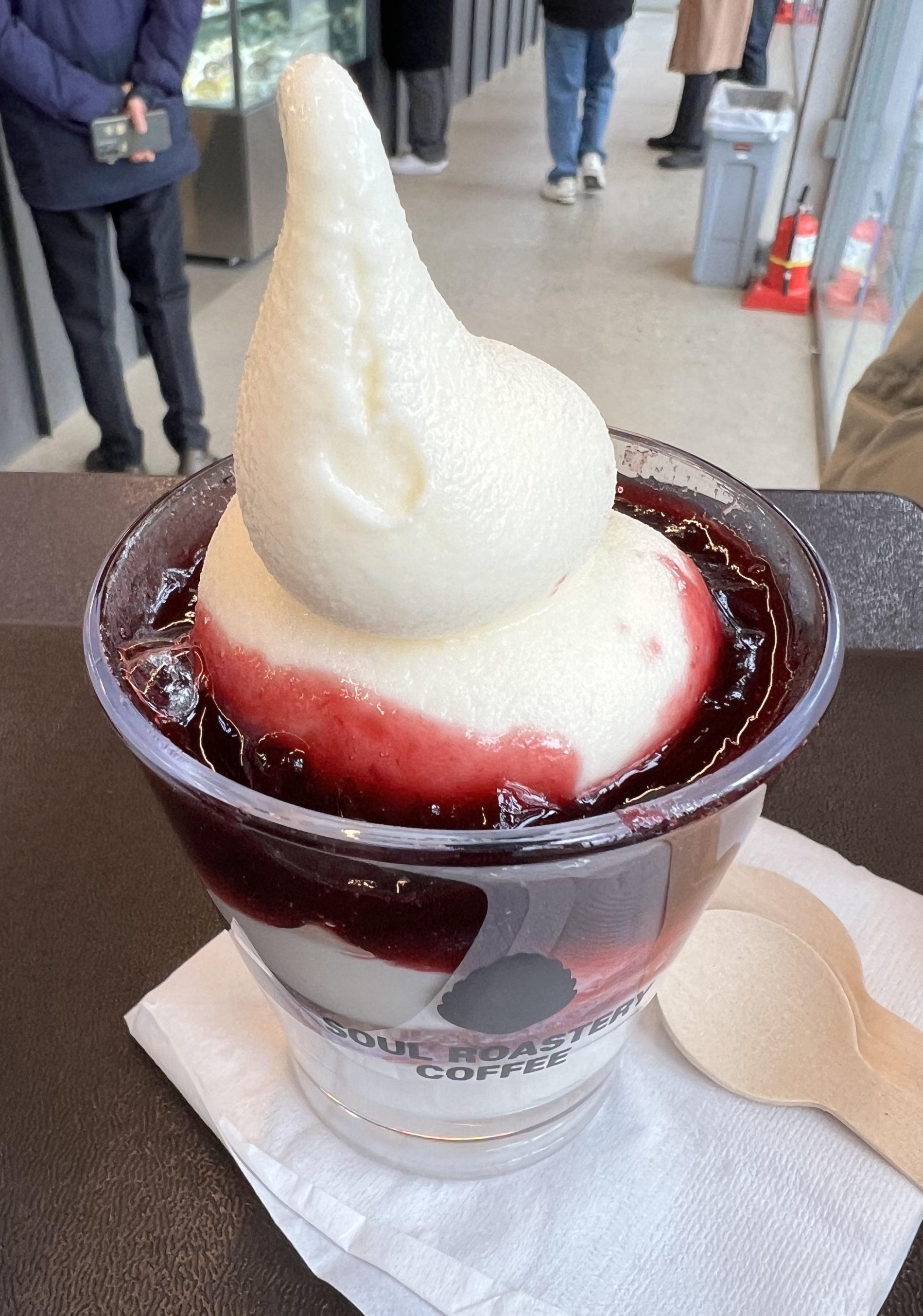 저는 바닐라 라떼와 체리 아이스크림을 먹었습니다. 소울 로스터리는 기본적으로 커피 퀄리티가 좋아서 라떼도 참 맛있었지만, 저는 체리 아이스크림을 강력히 추천해 드립니다!!