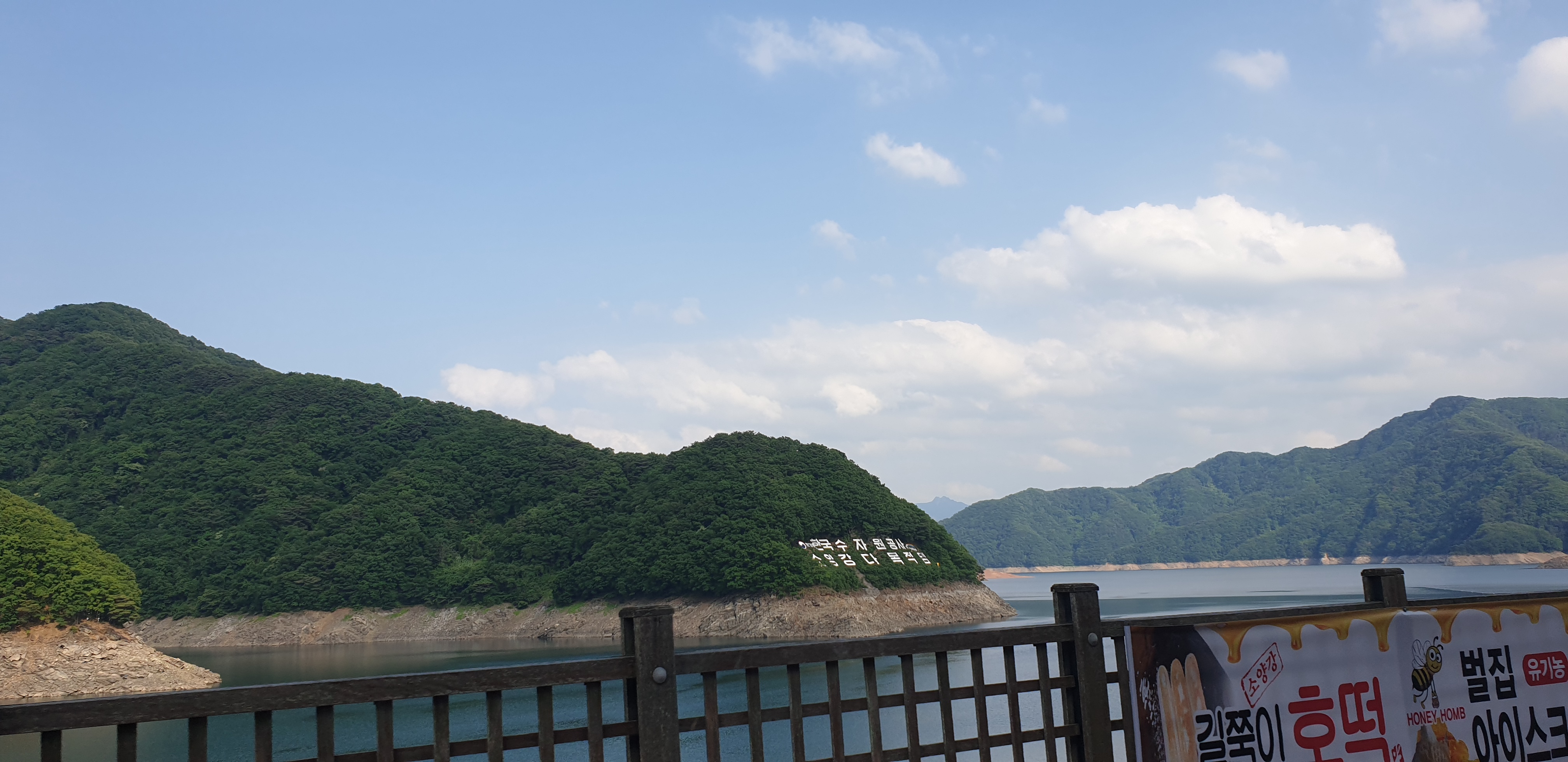 소양강댐 정상주차장까지 올라가서 주차하고, 소양호를 구경했습니다. 일요일인데도 주차장이 여유롭고 한적해서 좋았습니다.