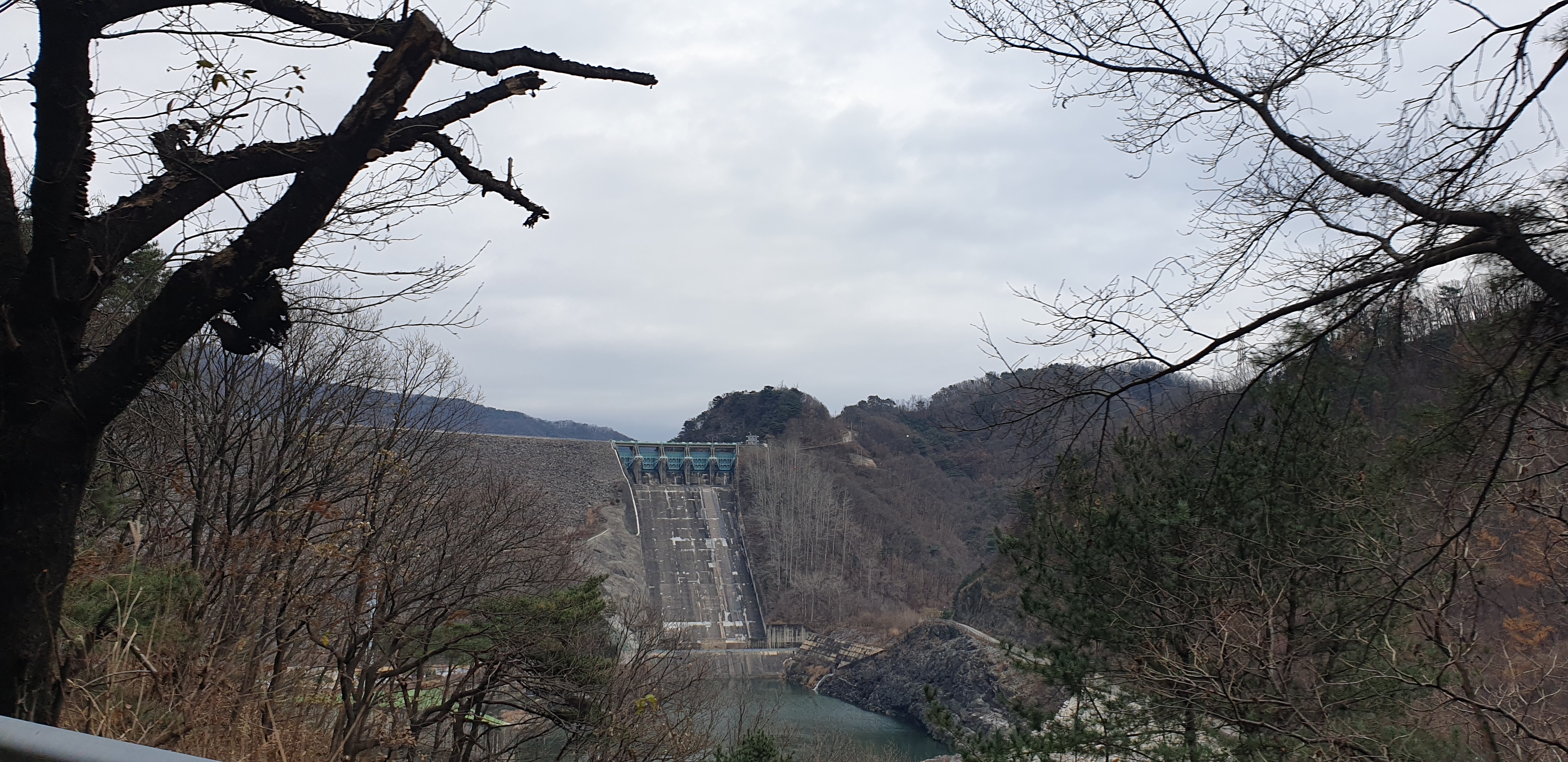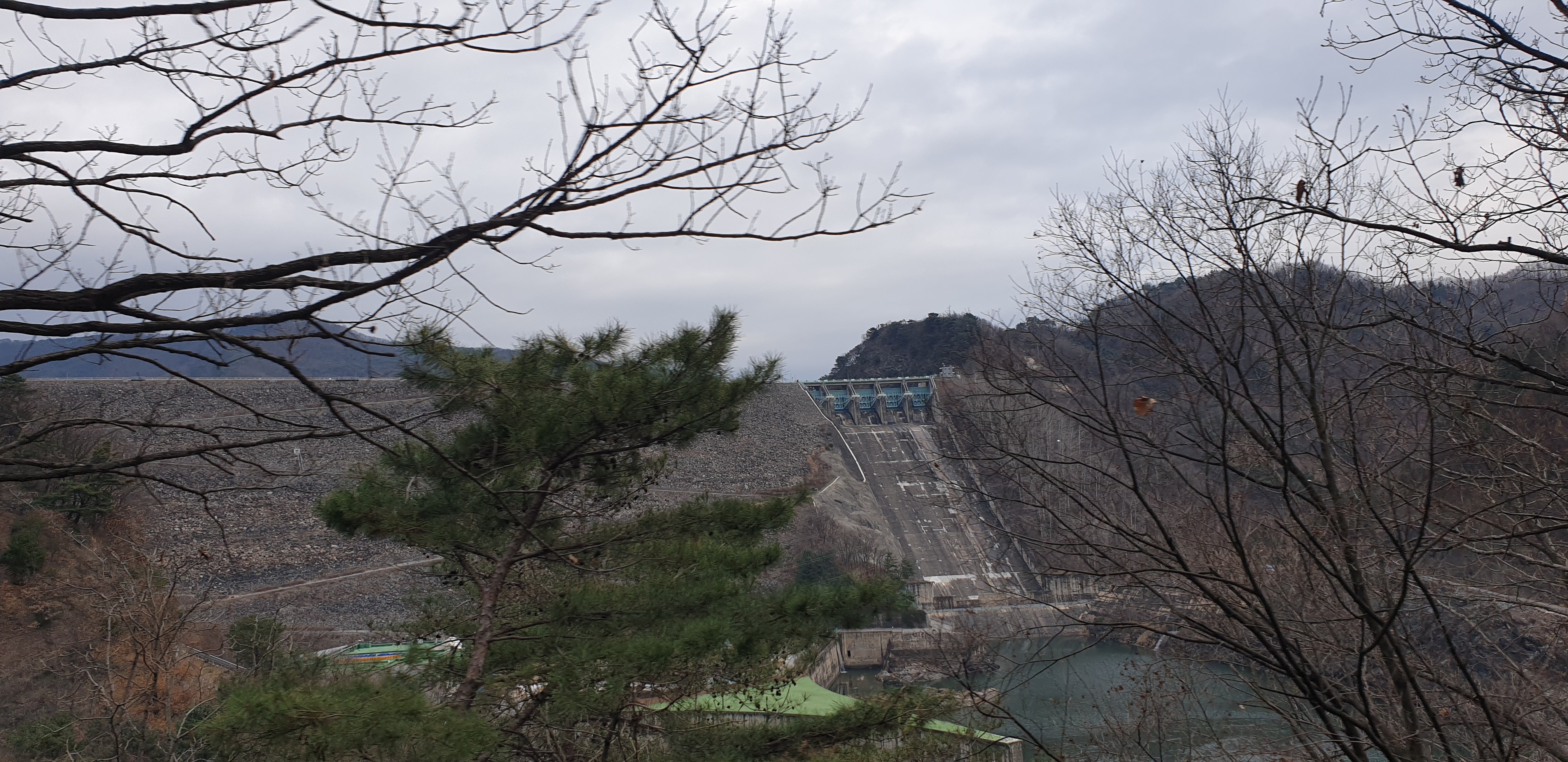 소양강댐 정상으로 올라가는 길에 찍어 본 댐의 모습입니다. 수문이 모두 담겨 있어서 물이 흐르는 모습은 보지 못했지만, 멀리서 보기에도 어마어마한 규모가 위압적이었습니다.
