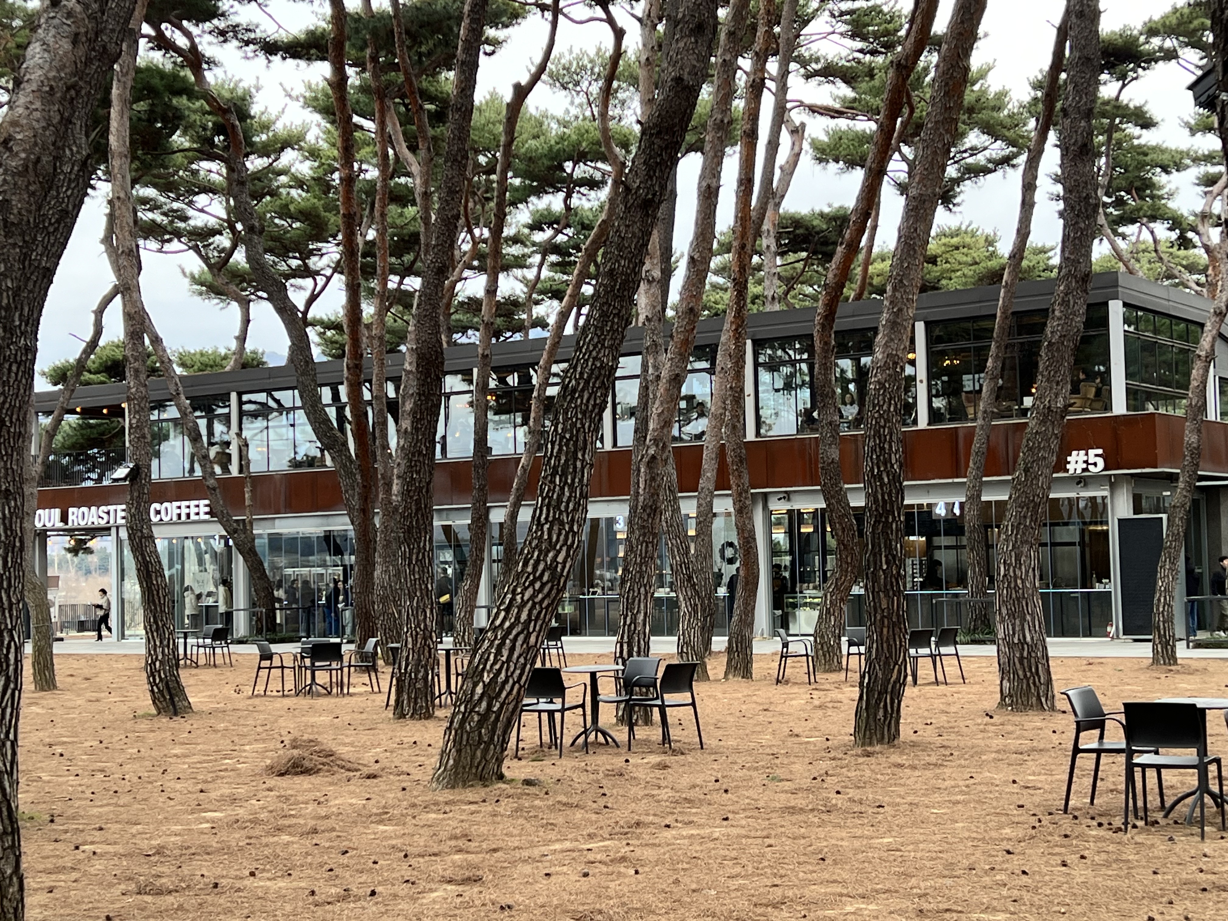 위 사진처럼 운치 있는 소나무숲 전체가 카페 부지입니다. 카페는 여러 개의 동으로 이루어져 있고, 각 동마다 다른 컨셉으로 인테리어 되어 있습니다.