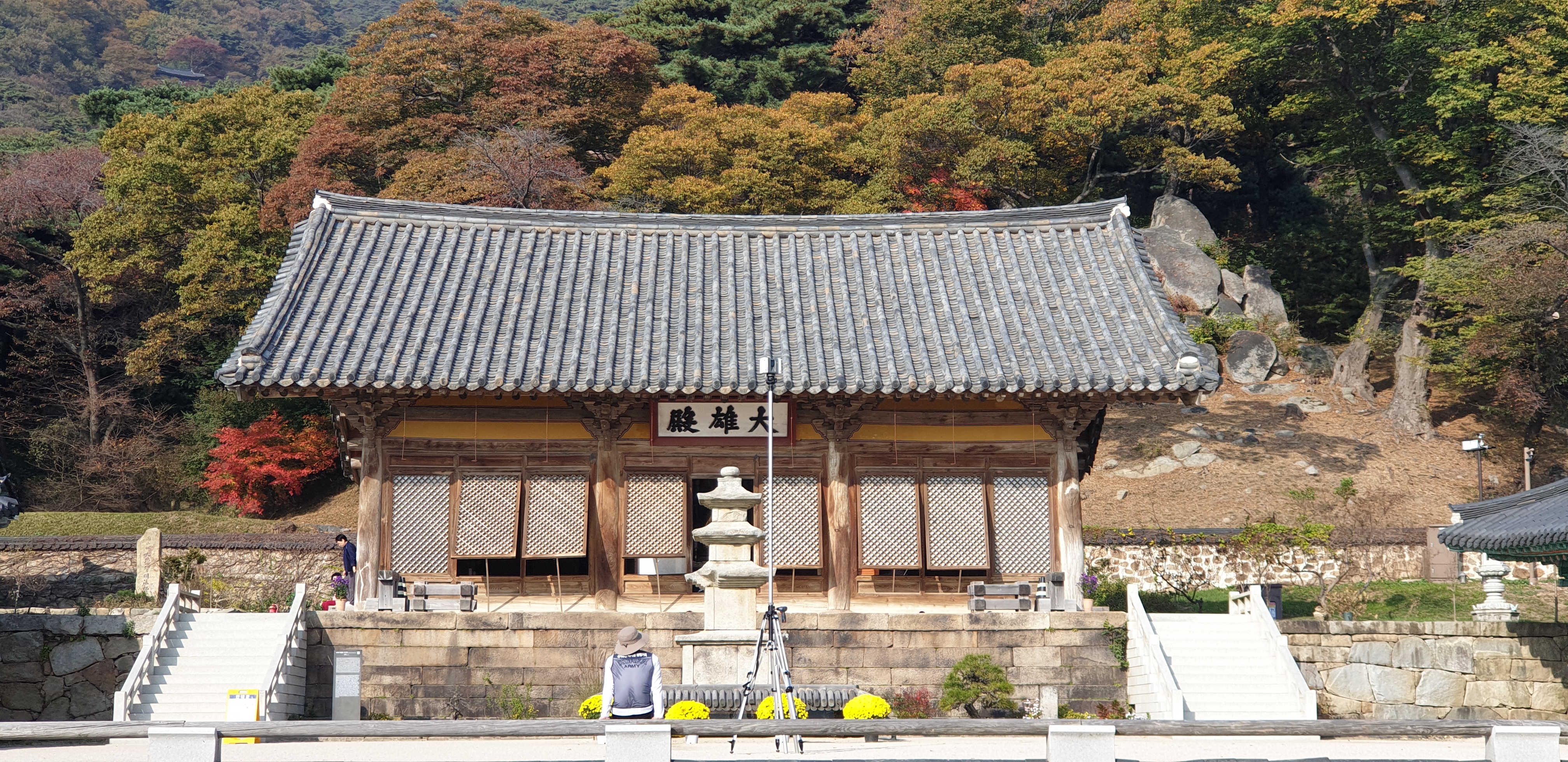 하지만 대웅전 앞마당에 있는 커다란 고목에 단풍이 꽤 물들었고, 수덕사까지 올라가는 길에도 알록달록 아름다워서 풍경을 즐기기엔 부족하지 않았습니다.