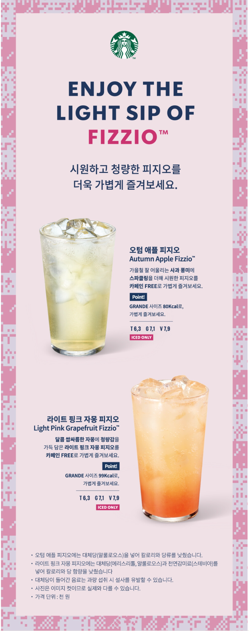라이트 핑크 자몽 피지오도 함께 출시됐는데, 자몽 음료는 시중에도 흔한 편이라 저는 애플 피지오를 마셔 봤습니다.