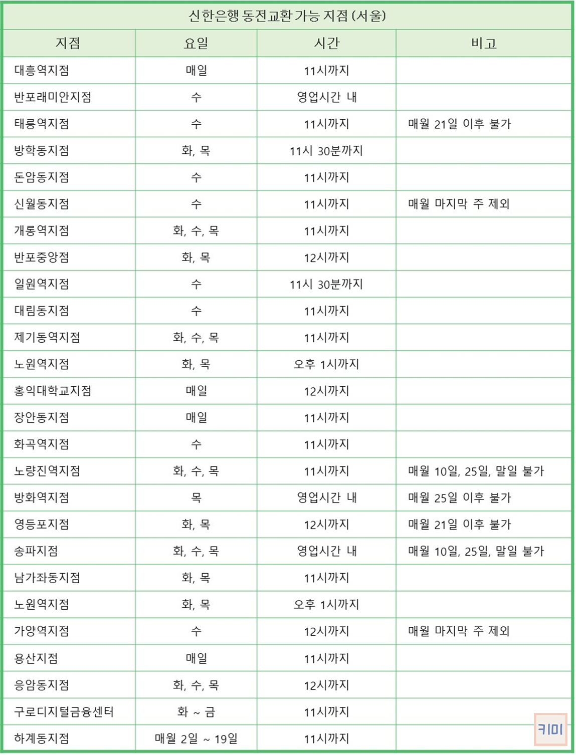 2024.07.22 - [생활팁/금융팁] - 하나은행 동전교환 가능한 지점 및 시간 총정리(수도권)