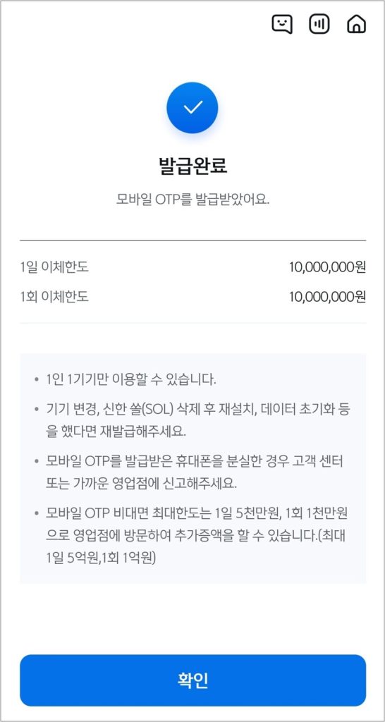 모바일 OTP 발급