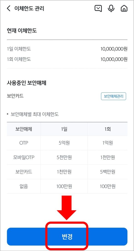 모바일 앱으로 쉽게 이체한도를 변경할 수 있으니 본인의 필요에 맞게 한도를 조정하시기 바랍니다.
