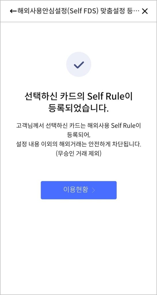 아래와 같이 해외사용안심설정이 완료됩니다.