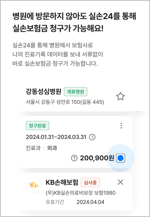 예를 들어, 환자가 병원에서 진료를 받은 후, 실손24 앱을 통해 병원의 진료 기록을 보험사에 전송할 수 있게 되어 사용자 편의성이 크게 높아졌습니다.