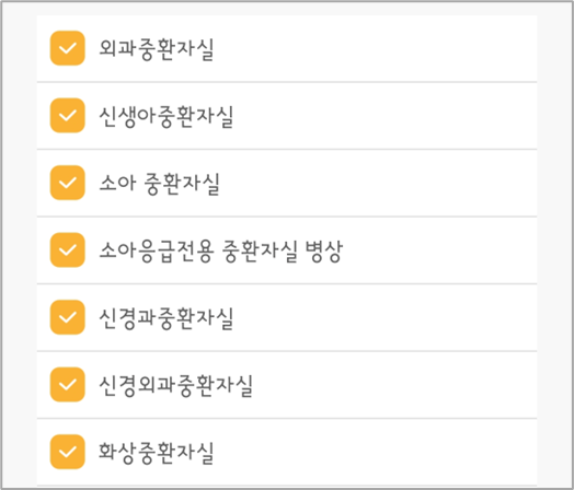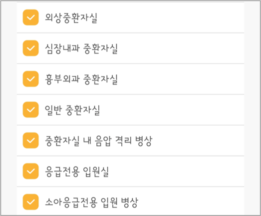 아래와 같이 상세한 조건을 설정하여 응급실을 검색할 수 있습니다.