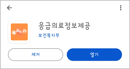 휴대폰 스토어에서 E-gen 또는 응급의료정보제공을 검색해서 앱을 설치합니다.