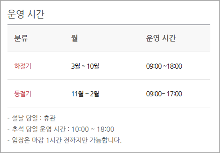설날 당일에는 휴관이지만, 추석에는 관람 가능합니다.