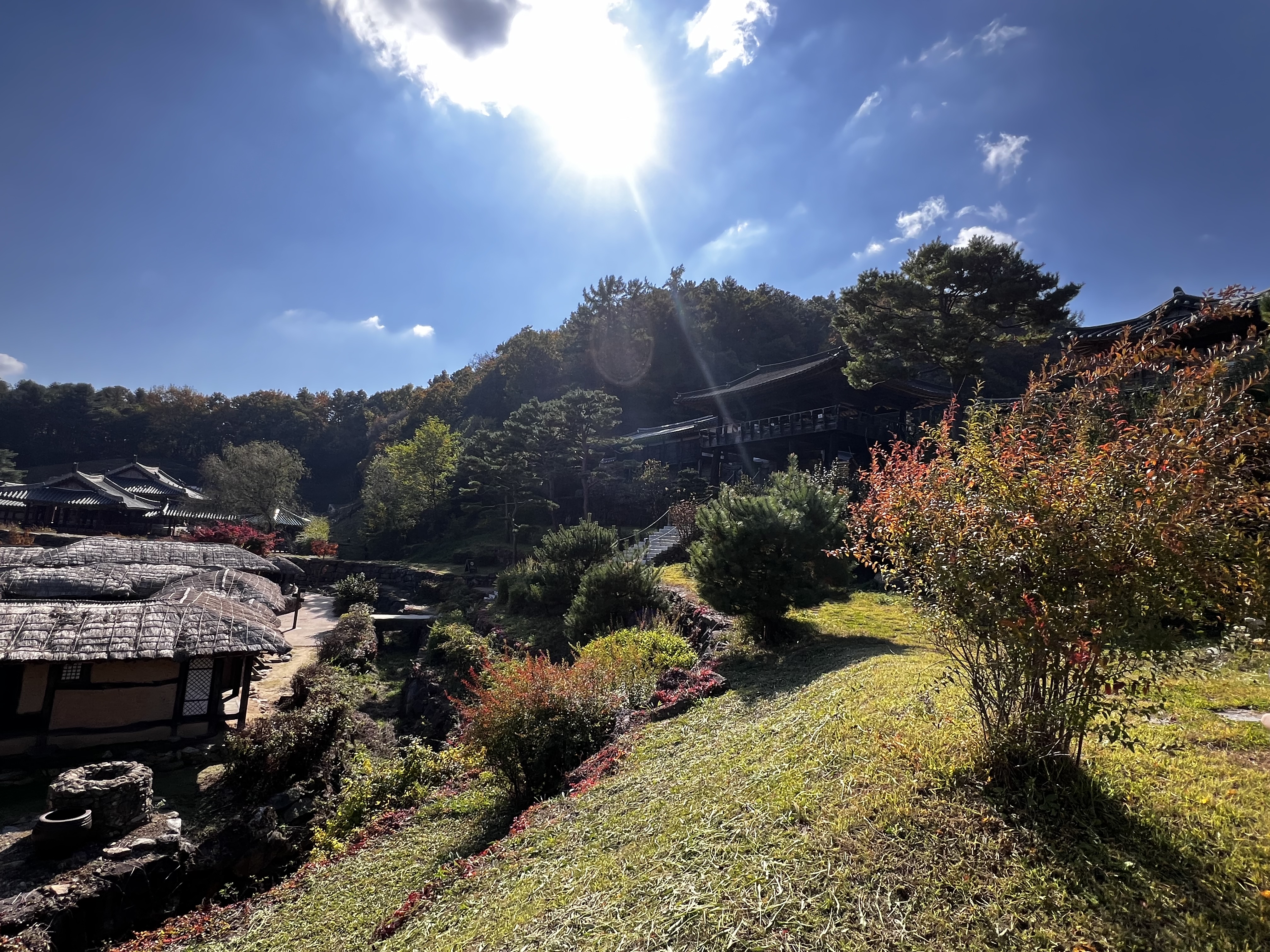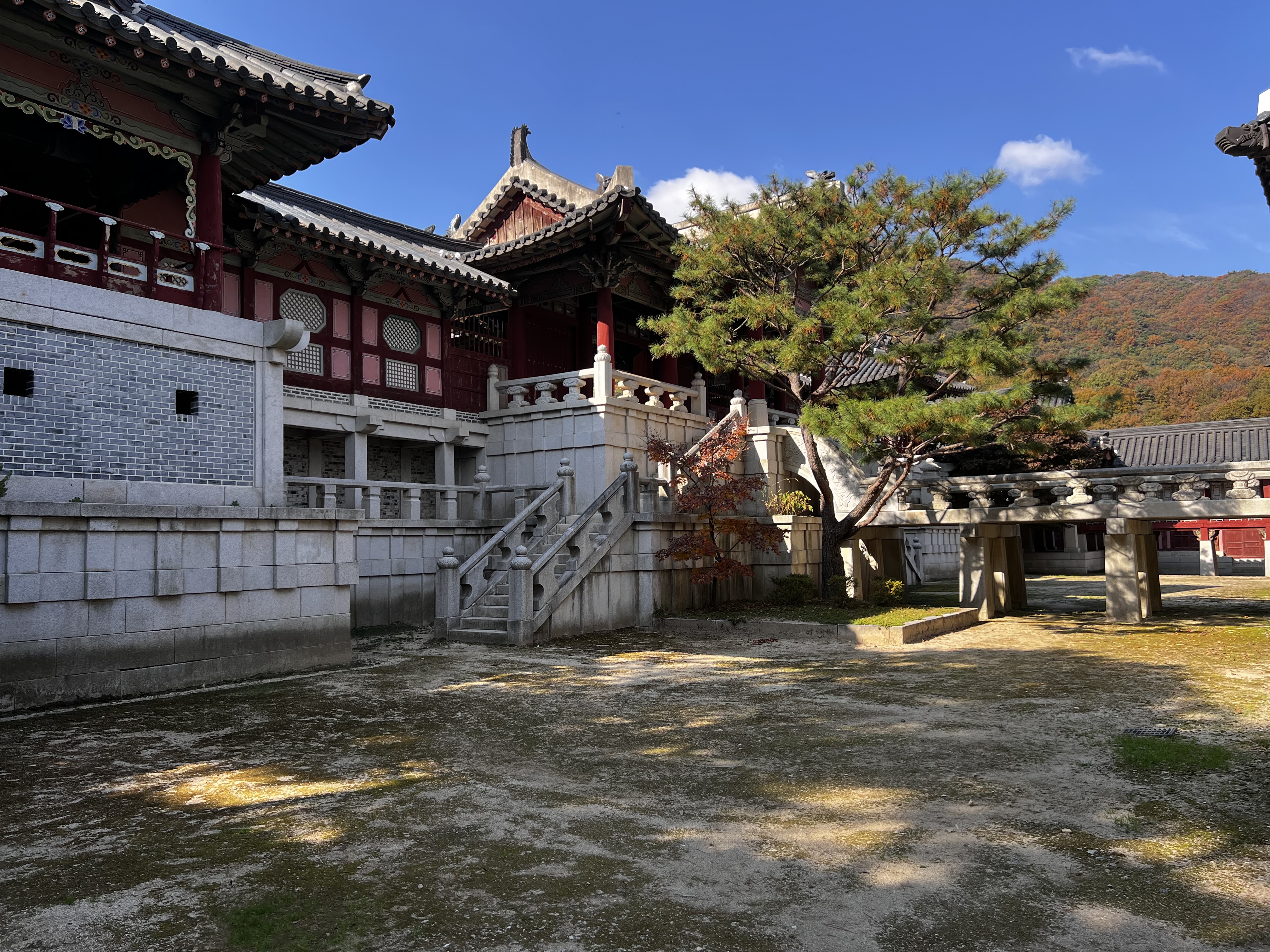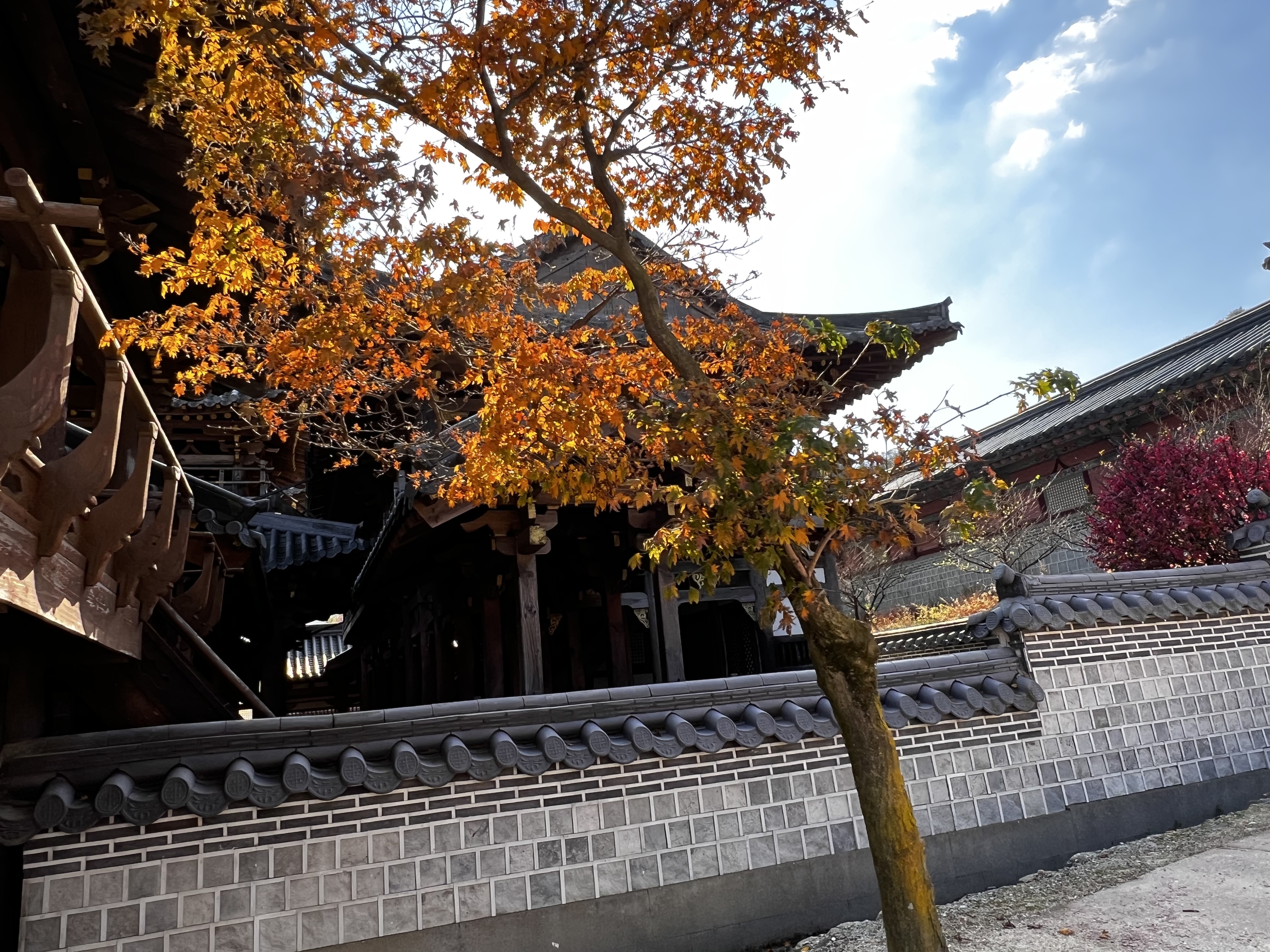 대장금파크의 또 다른 매력은 자연 속에서 여유롭게 산책할 수 있다는 점입니다. 마침 단풍이 예쁘게 들기 시작할 때라 궁궐과 함께 아름다운 풍경을 감상할 수 있었습니다.