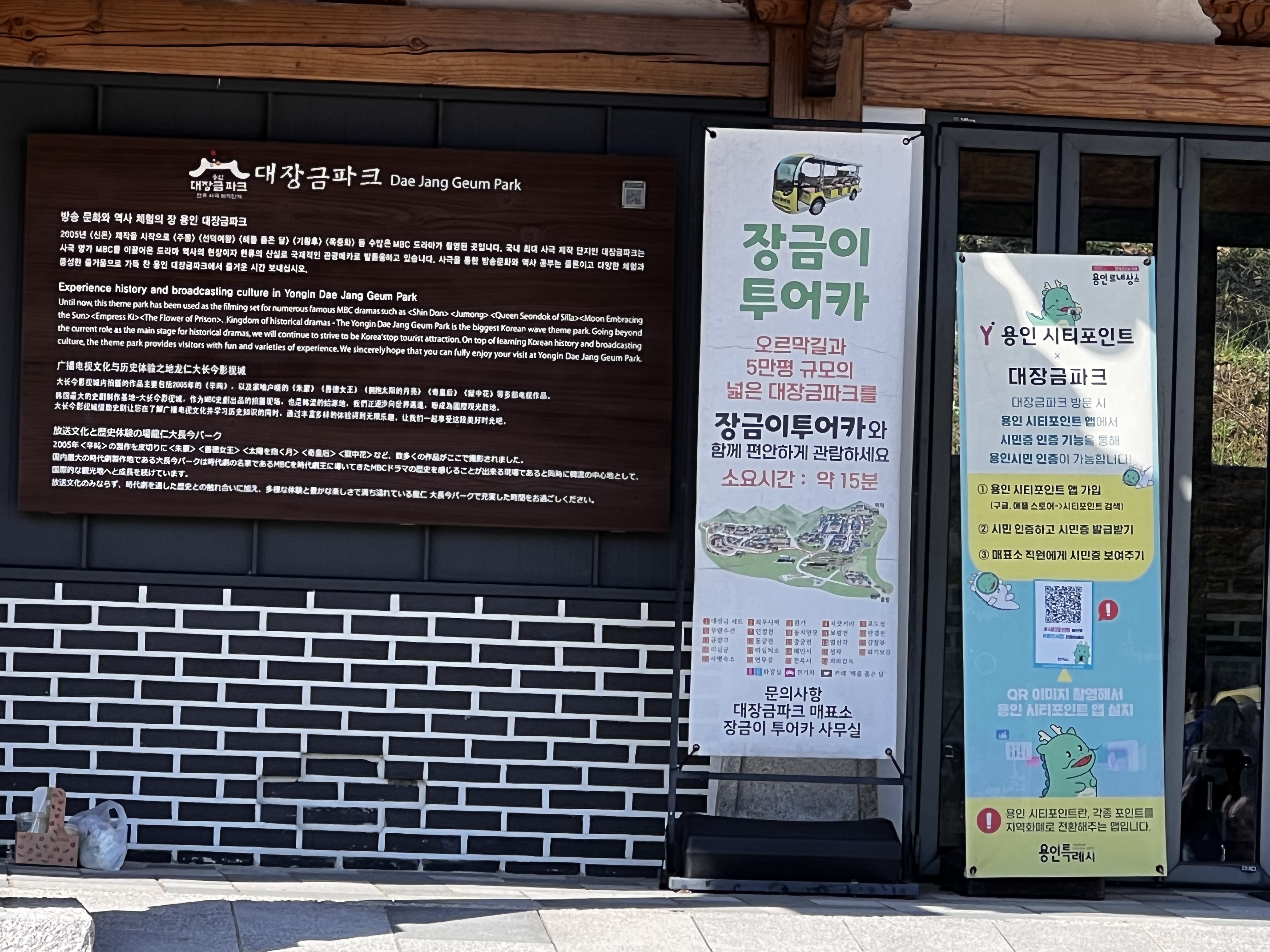 매표소 앞에서 전기 카트를 타고 대장금파크 전반을 쭉 둘러보는 코스입니다.
