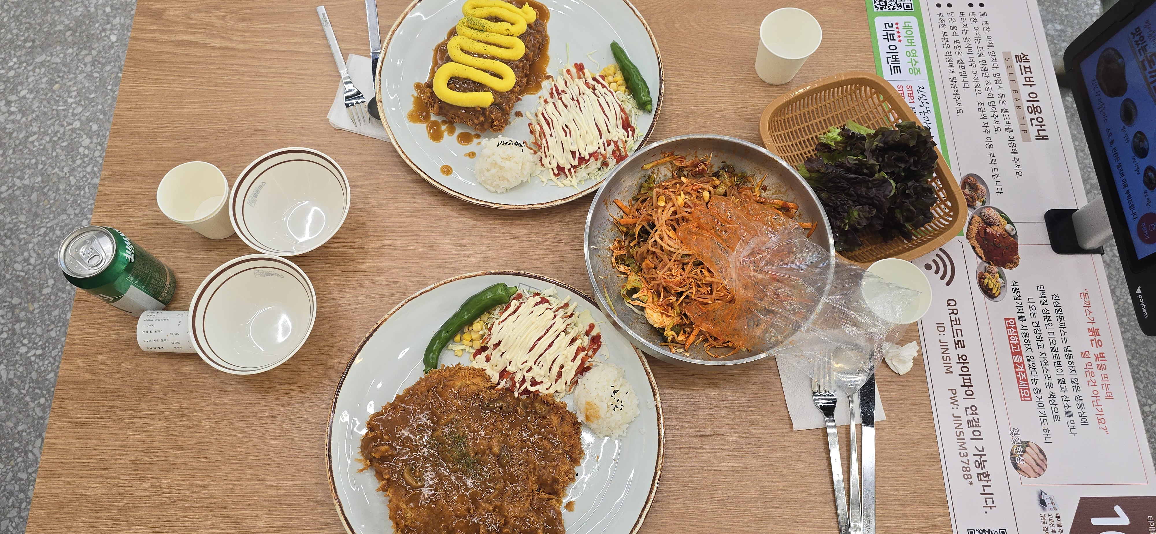 저희 일행은 각자의 취향대로 진심 왕 돈까스와 고구마 치즈 돈까스를 주문하고, 다 같이 나눠 먹기 위해 진심 왕 쫄면을 하나 추가로 주문했습니다.