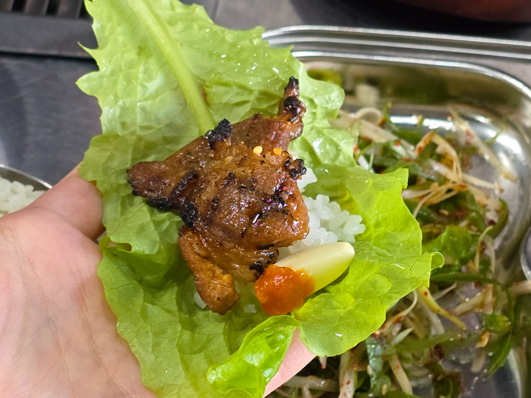 저는 밑에 깔린 파채와 함께 싸 먹거나 마늘과 함께 먹는 것이 좋았습니다.