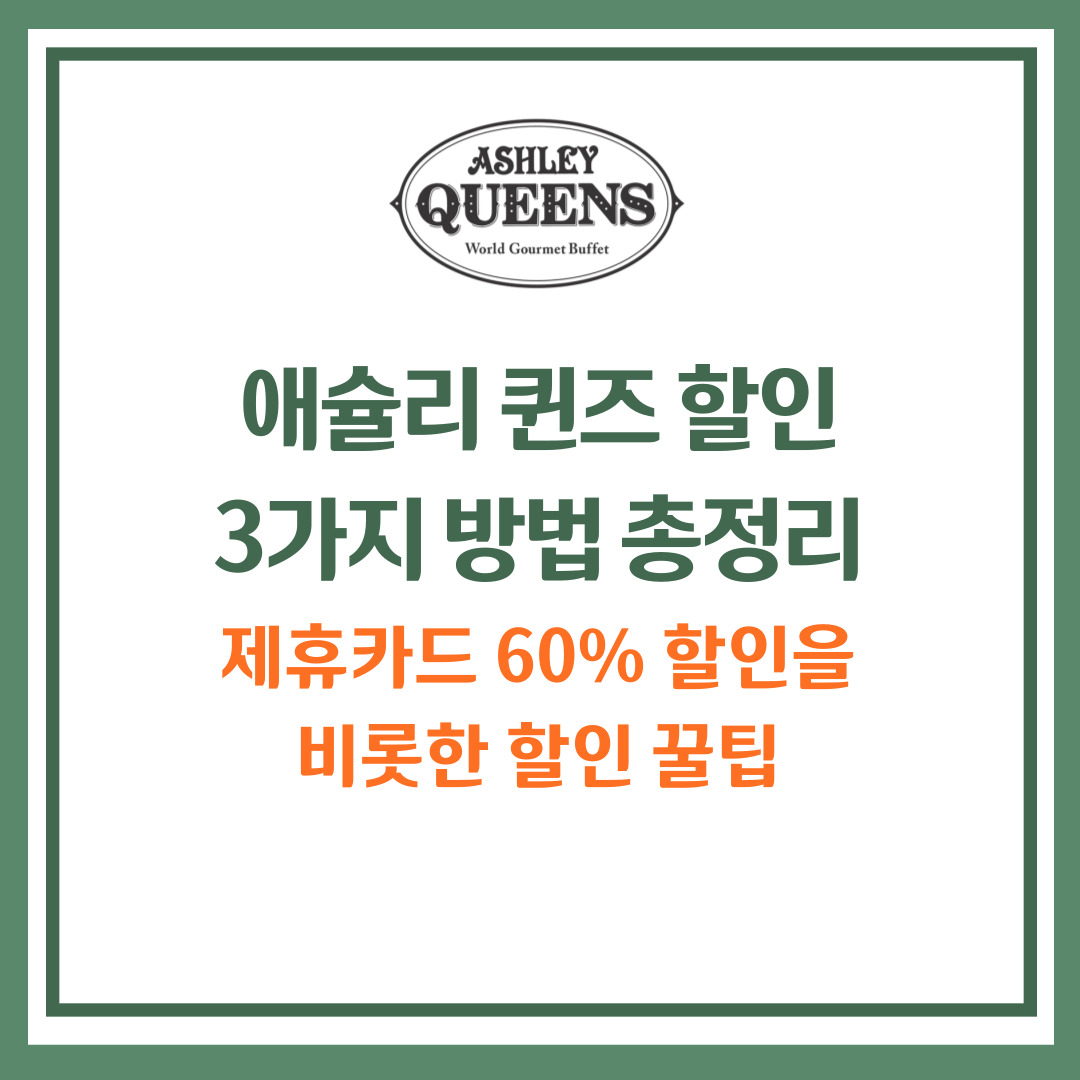 이 글에서는 애슐리 퀸즈 할인을 받을 수 있는 꿀팁 3가지 방법을 정리해서 안내해 드리겠습니다.
