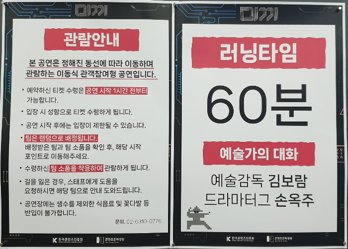 현재 청량리에 있는 KOCCA 콘텐츠문화광장에서 공연 중이며, 이번주 토요일(12월 16일)까지 공연이 계속됩니다.