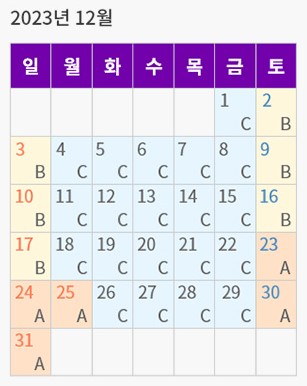 에버랜드는 시즌별로, 요일별로 요금을 다르게 적용하는 ABCD 요금제를 사용하고 있습니다. 요금은 D > A > B > C 순으로 저렴합니다.