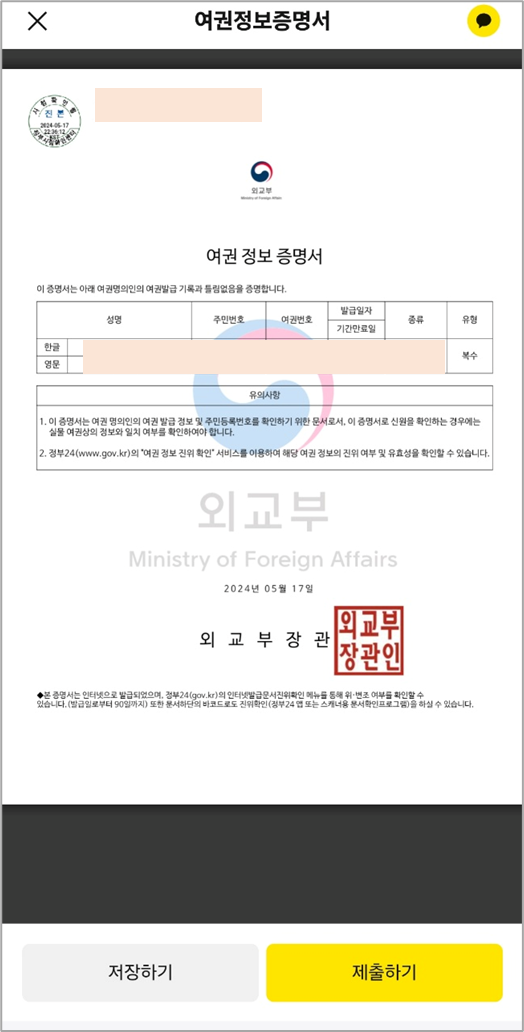 ⑦ 그럼 곧바로 여권정보증명서가 발급되어 확인할 수 있습니다.