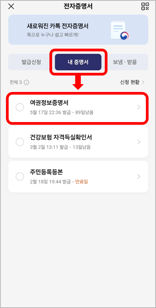 카카오톡 여권번호 조회 방법