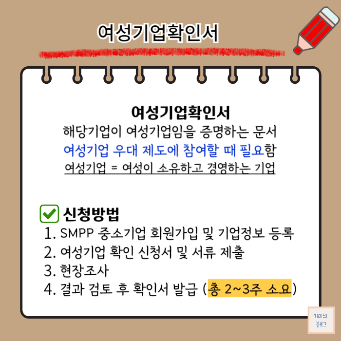 여성기업확인서 신청방법