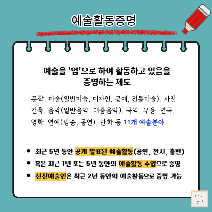 개인의 콘텐츠가 중요해지면서 예술가로서 활동하는 분들이 점차 증가하고 있습니다. 그 노력과 재능을 인정받고 보다 많은 기회를 얻기 위해서는 '예술활동증명'과 같은 제도를 알고 활용하는 것이 중요합니다.
