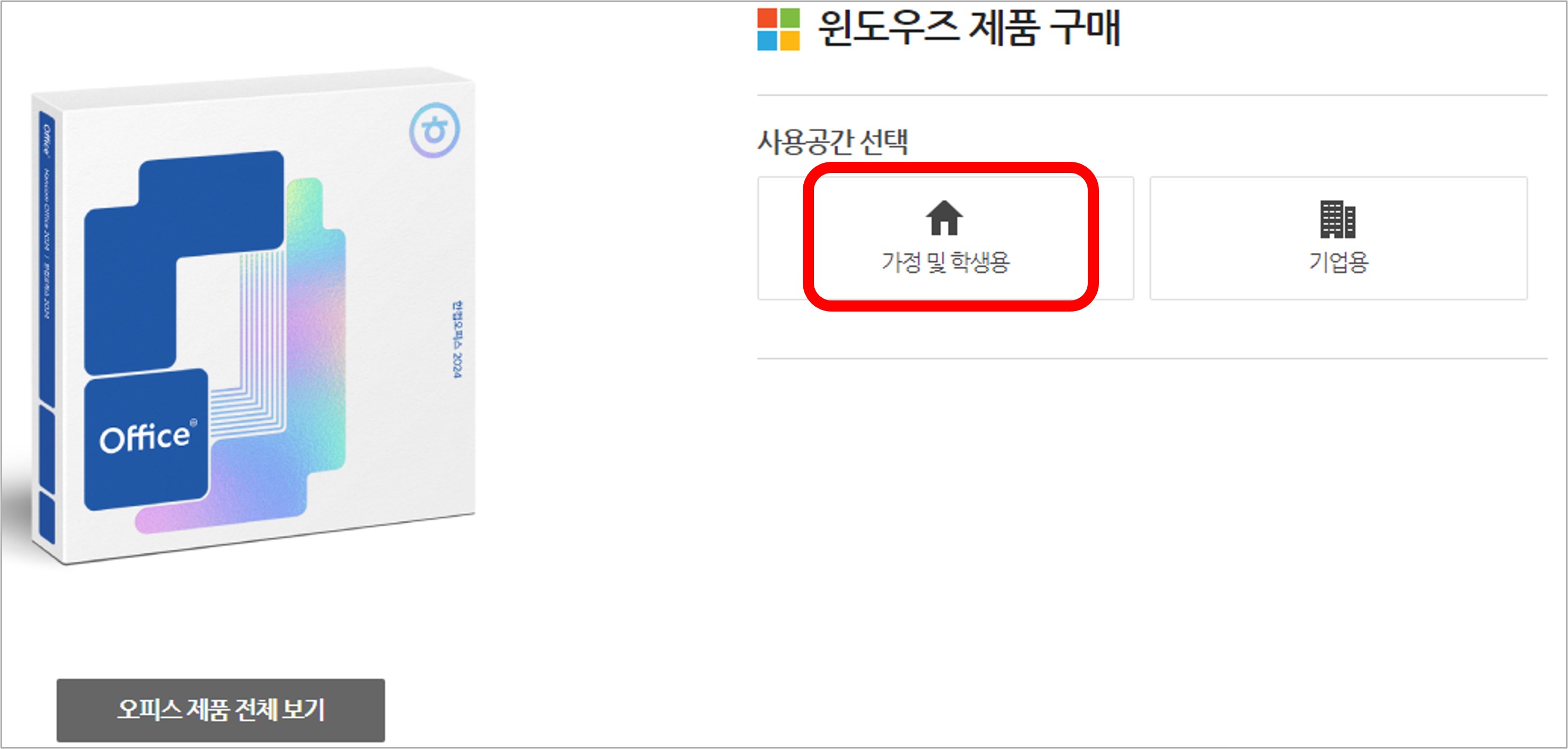 - 한컴오피스(영구/구독) : 가정 및 학생용 제품(구입하기)