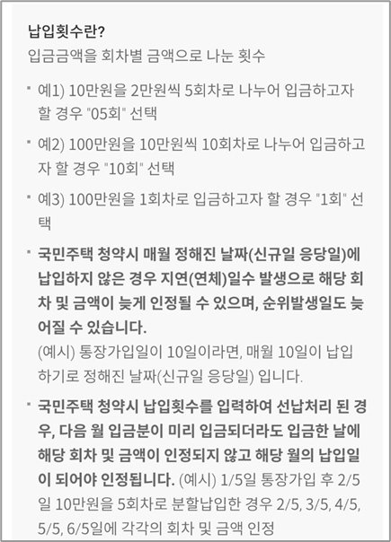 청약통장 월납입 인정액 25만원으로 상향(예치금 납입 횟수 정보)