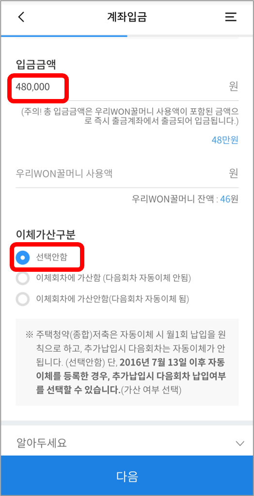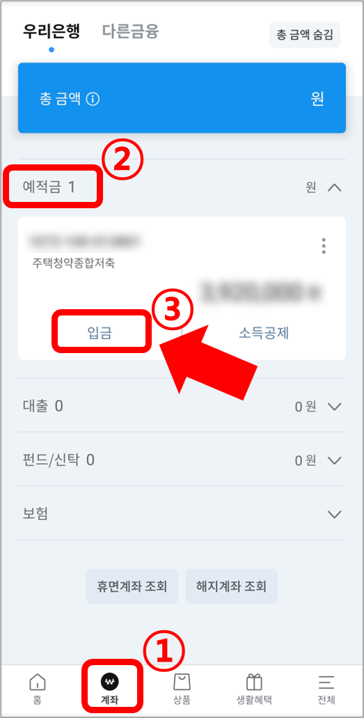 우리은행 청약통장 일시납 방법