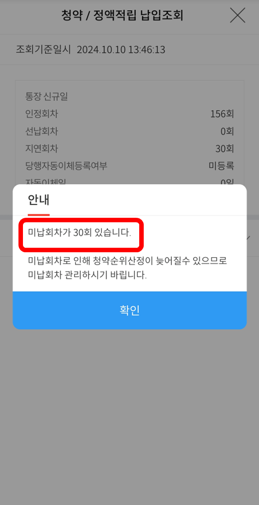 우리은행 청약 미납회차 조회 방법