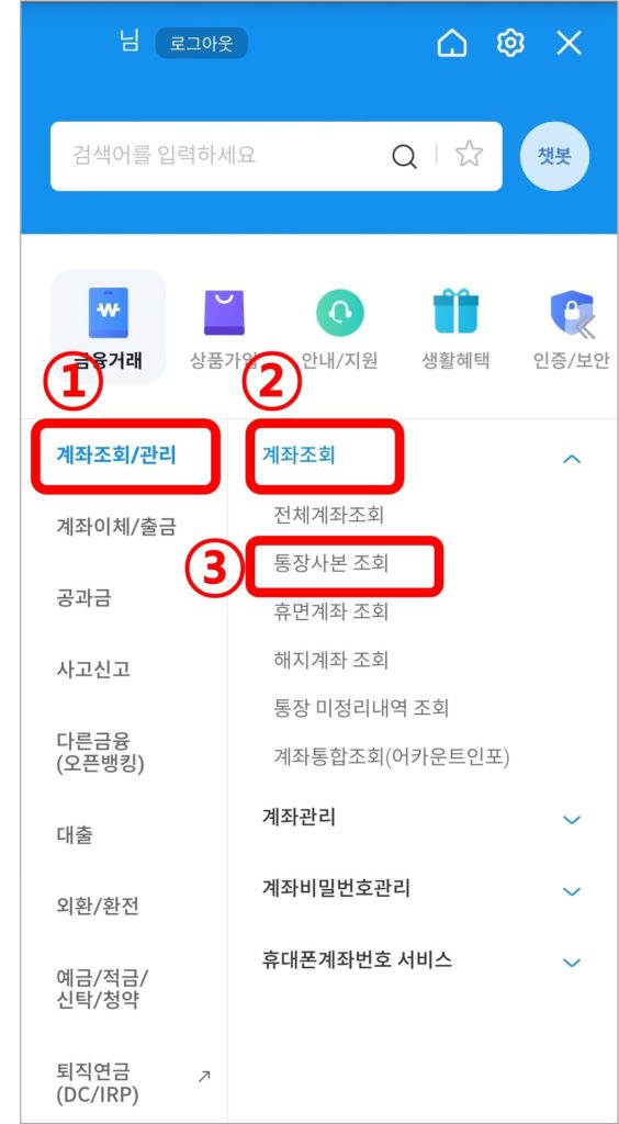 우리은행 통장사본 발급 방법