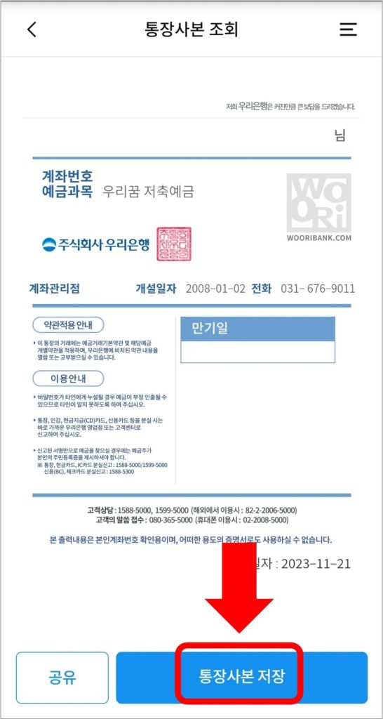 우리은행 통장사본 발급 방법