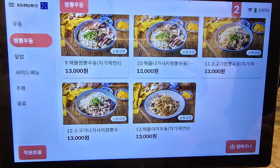 해물짬뽕우동, 해물나가사끼 짬뽕우동, 소고기 짬뽕우동, 소고기나가사끼 짬뽕우동, 해물야끼우동이 있습니다.