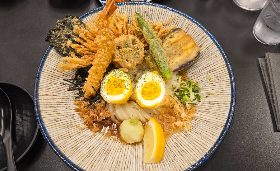 그래서 저는 냉덴뿌라붓가케우동을 주문했습니다.