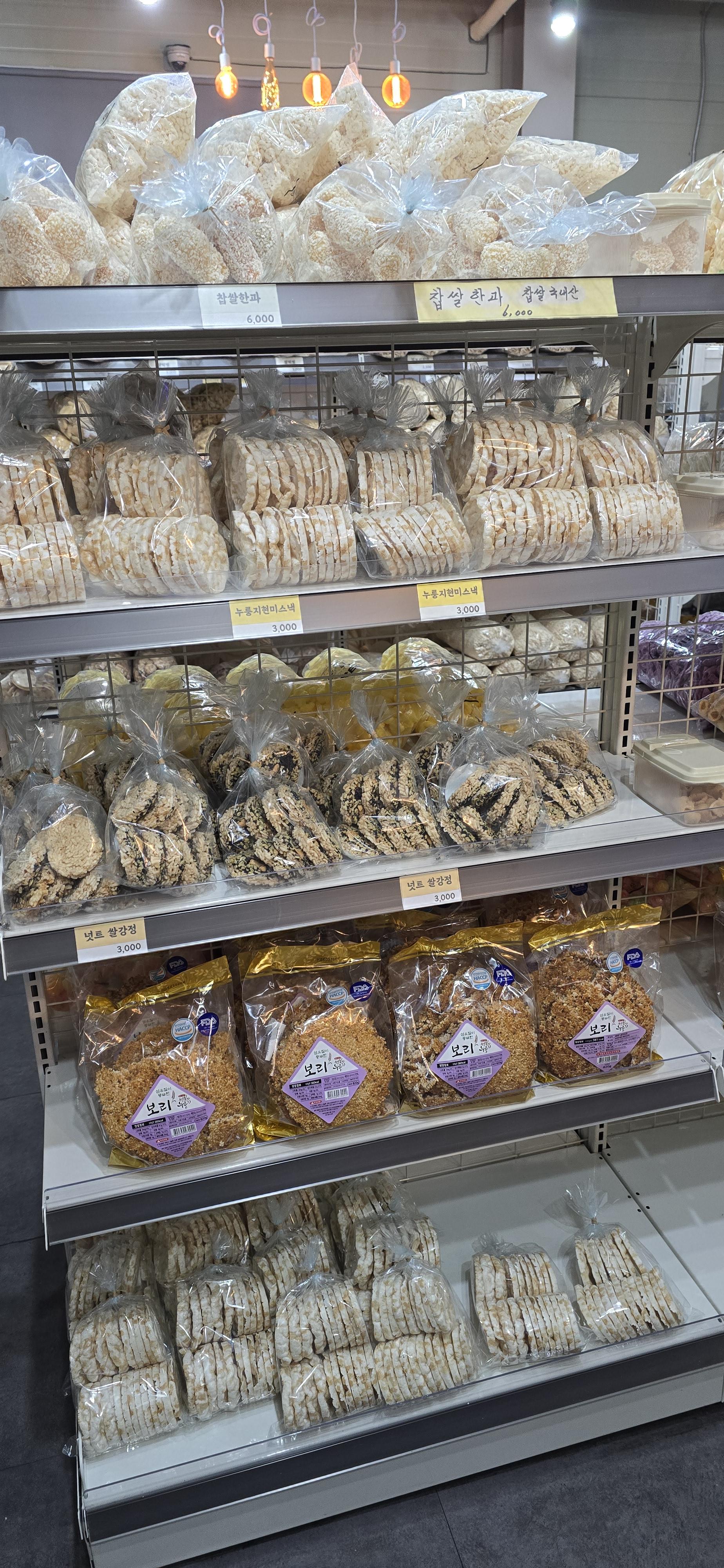 찹쌀한과, 쌀떡뻥, 쫀디기, 누룽지과자, 짱구도 있고