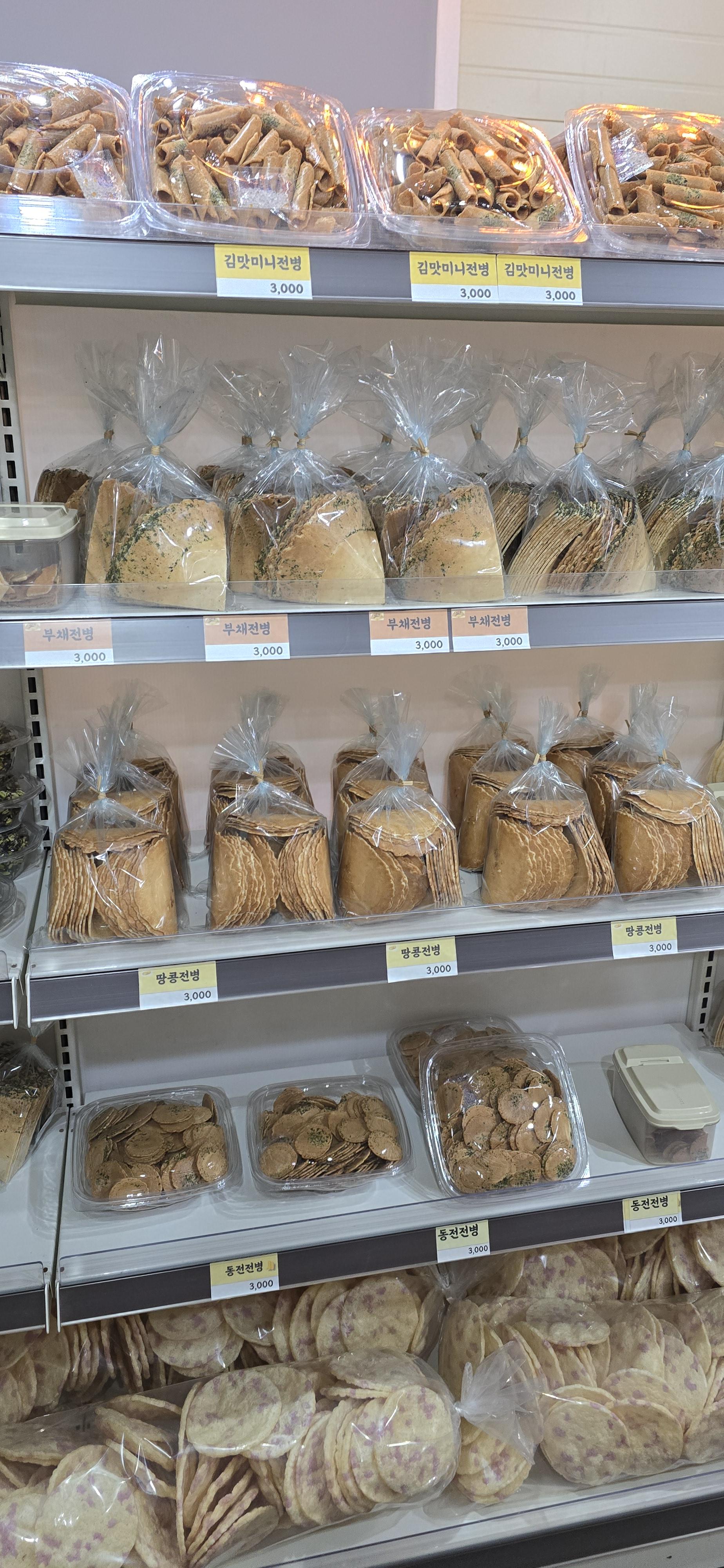땅콩전병, 김전병, 동전전병 등이 250g에 3,000원으로 저렴한 가격이었습니다.