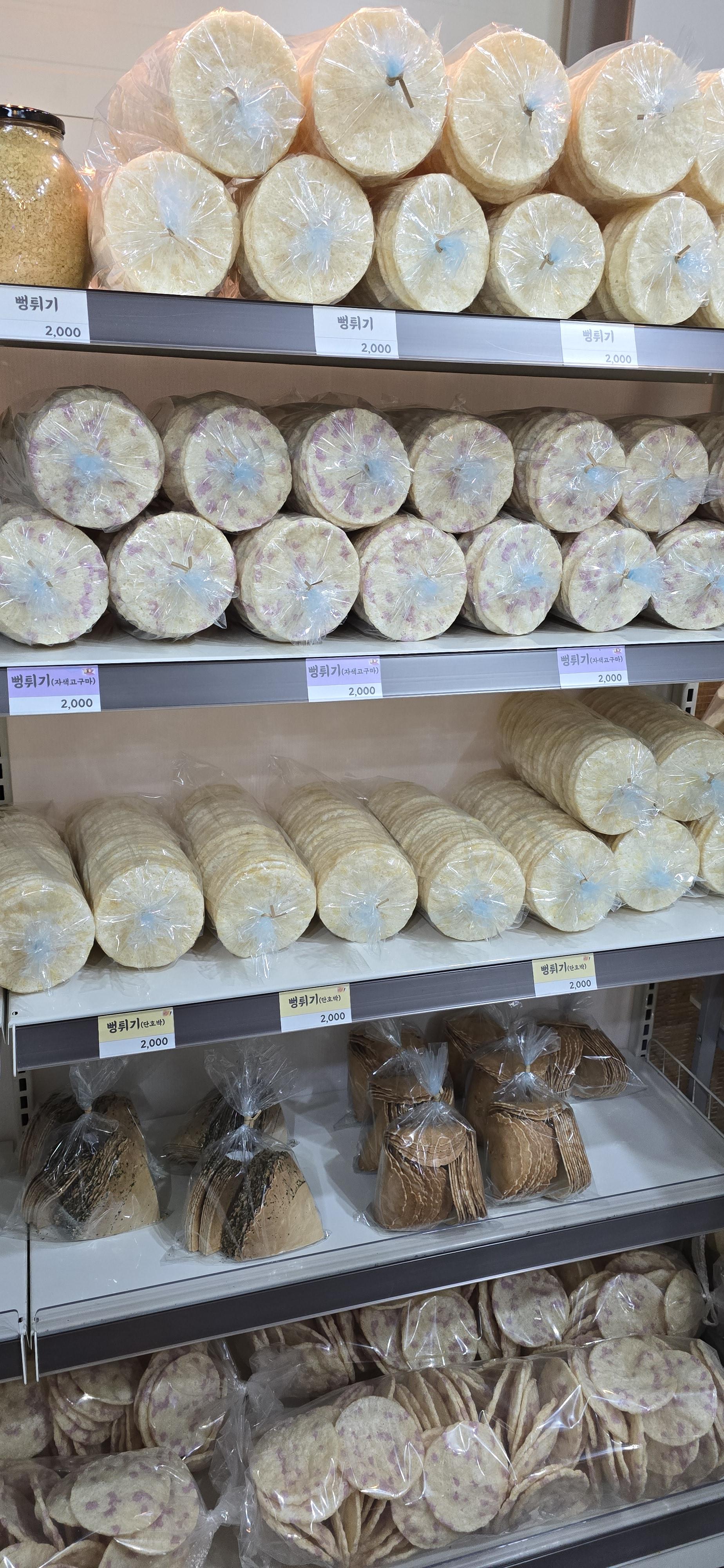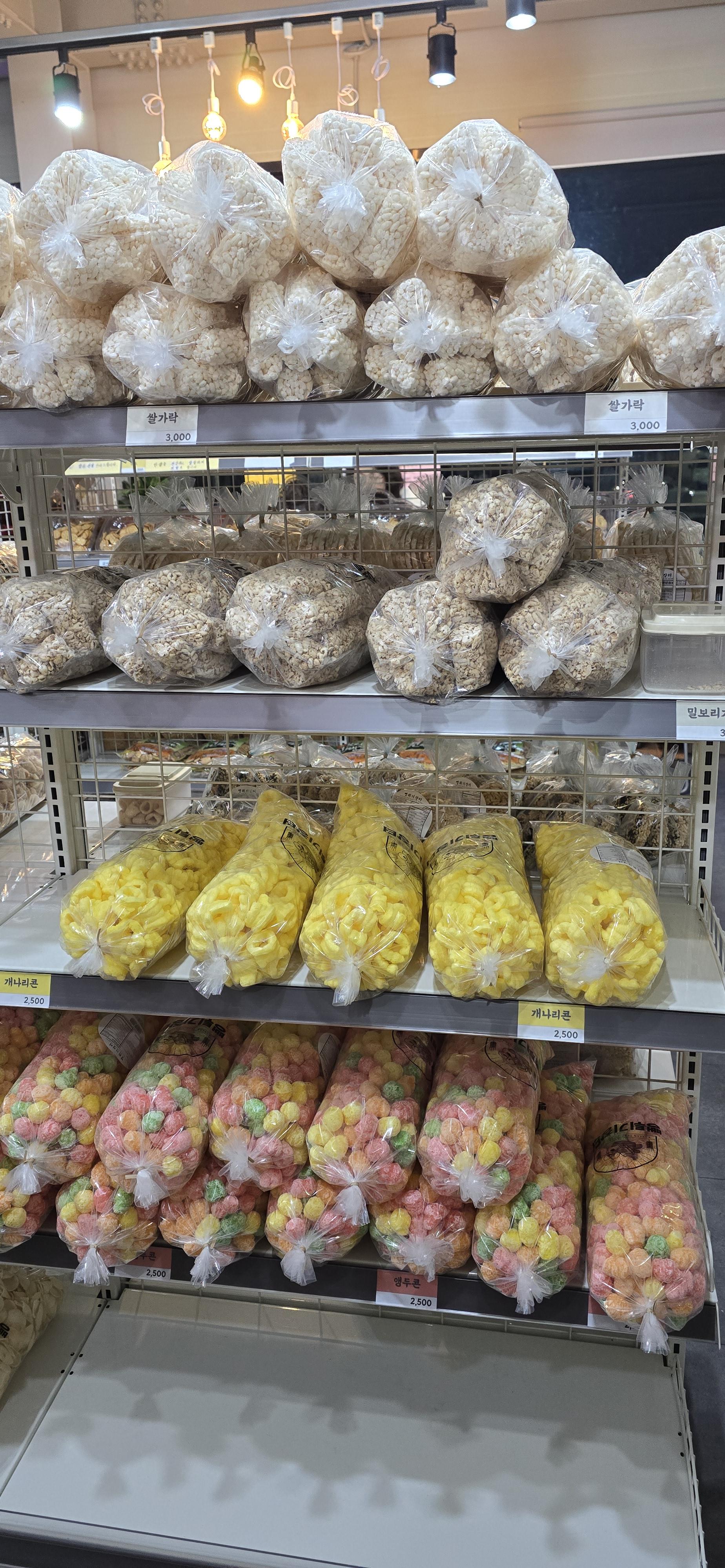 클래식한 뻥튀기도 색색깔로 있고 저는 처음 보지만 '김일성과자'?라는 것도 있더군요.