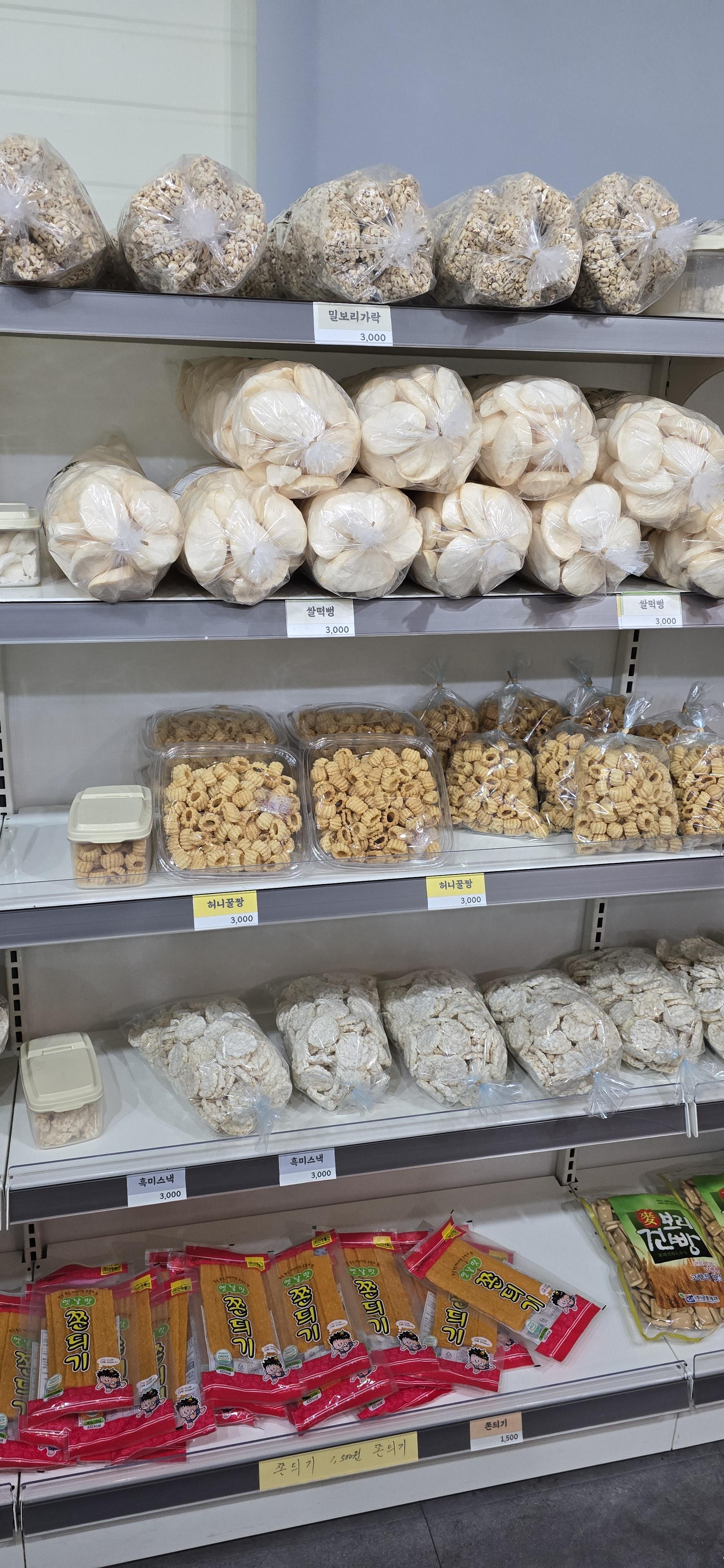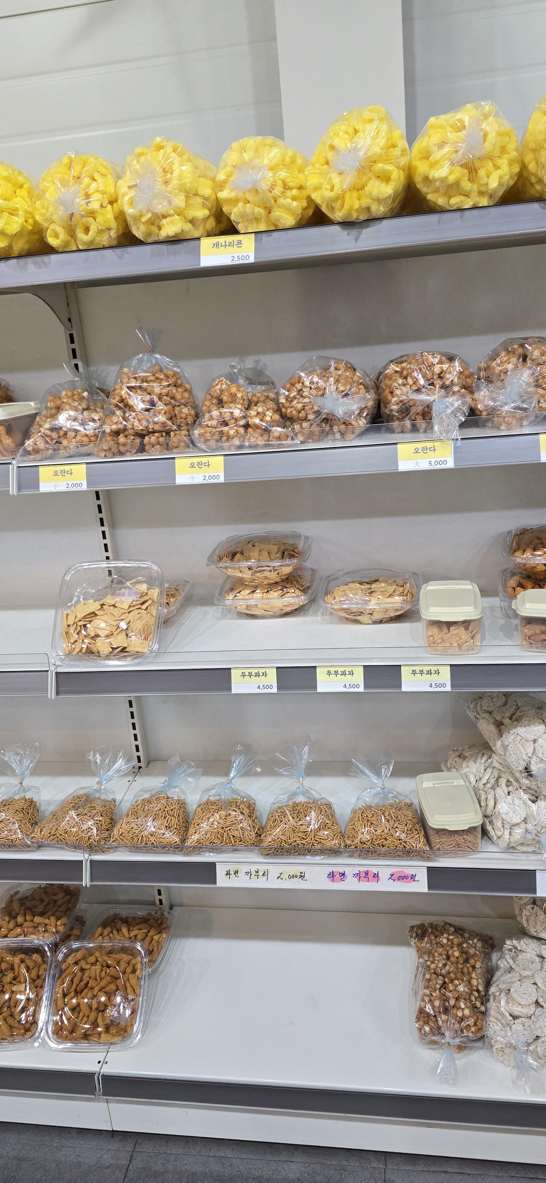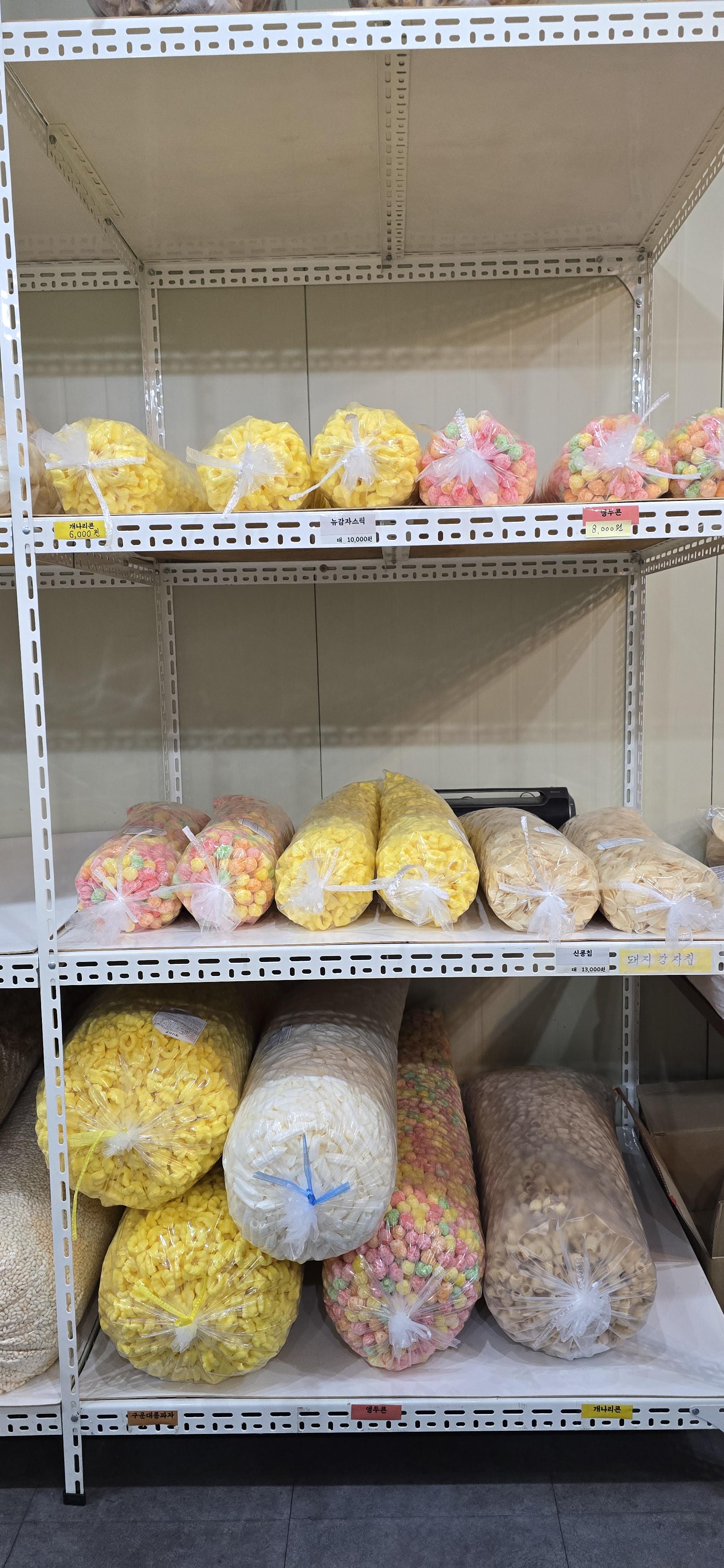 이곳은 옛날과자와 뻥튀기를 주로 판매하는 독특한 가게로, 저렴한 가격에 다양한 종류의 과자를 구매할 수 있습니다.