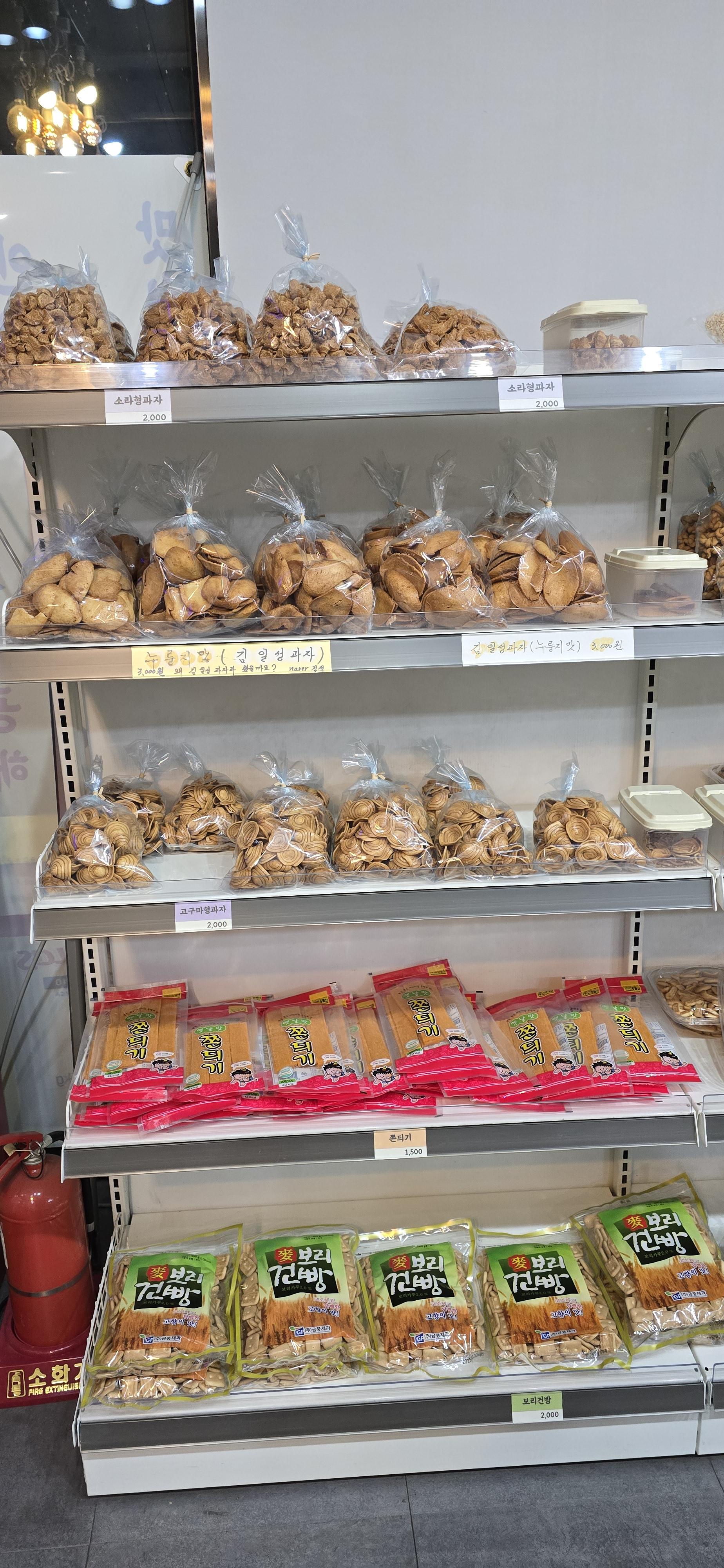 클래식한 뻥튀기도 색색깔로 있고 저는 처음 보지만 '김일성과자'?라는 것도 있더군요.